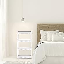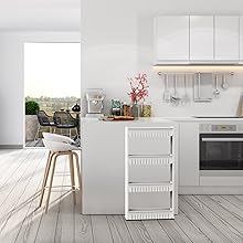 4 Tier Slim Storage Cart Mobile Shelving Unit Organizer Slide Out Storage Rolling Utility Cart Tower, Gap Storage Pantry Storage Rack for Kitchen Bathroom Laundry Narrow Spaces, Plastic, White is backordered and will ship as soon as it is back in stock.