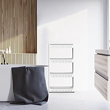- Exquisite design - The shelf’s super slim design allows it to fit even in a narrow space, like between a refrigerator or washing machine. It also allows you to store all your toiletries in the bathroom, occupying minimal space. The edges of the shelf are raised to keep your products safe from falling.