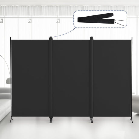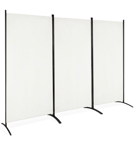 3-Panel Room Divider Folding Privacy Screen with Hinges Steel Base Wood