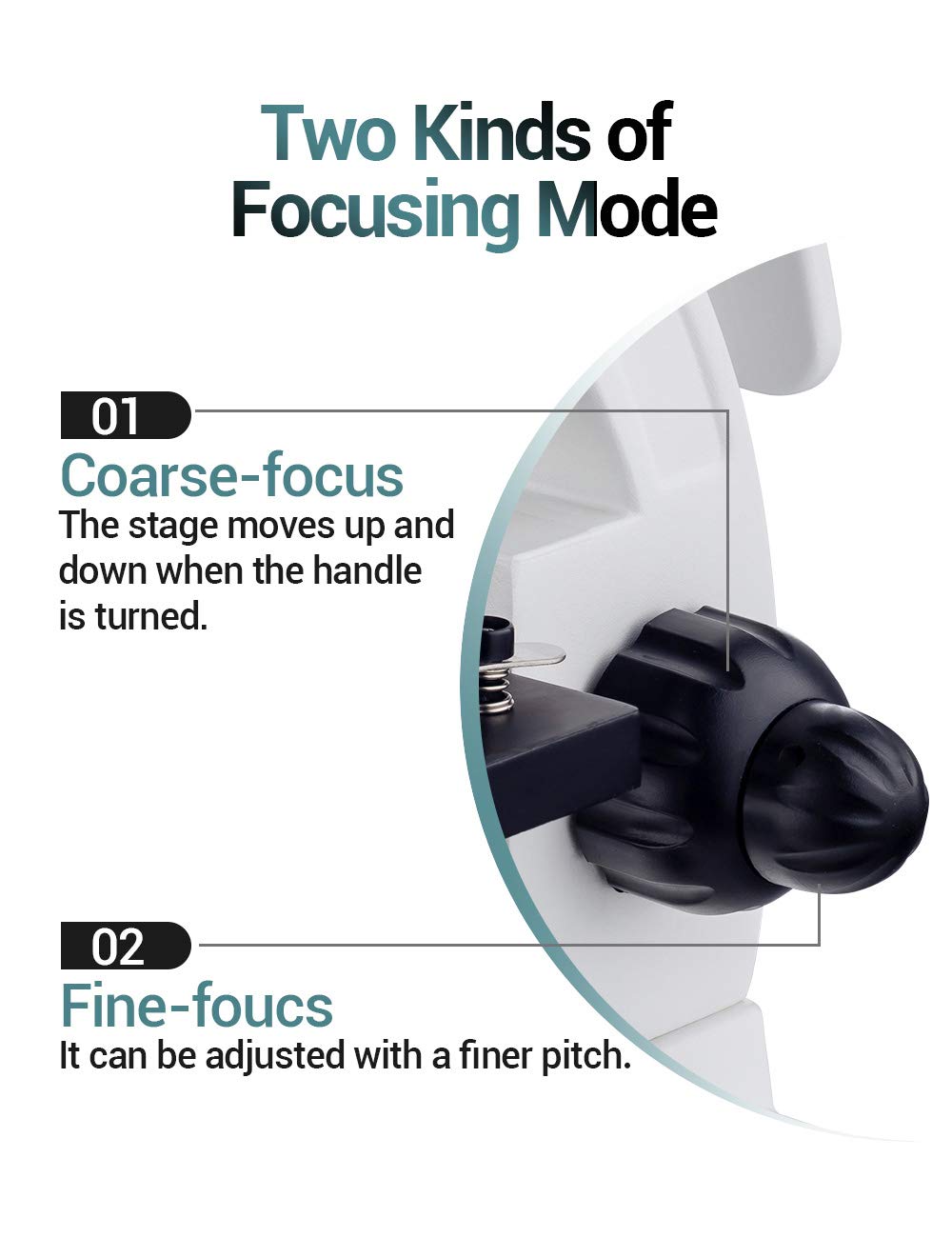 - Design to reduce fatigue Based on ergonomics: The eyepiece sleeve is tilted at an easy-to-see angle (45 degrees), the monocular head can be rotated 360 horizontally, and the arm is easy to carry. Depending on the design, the microscope can be used anywhere and no matter who uses it.