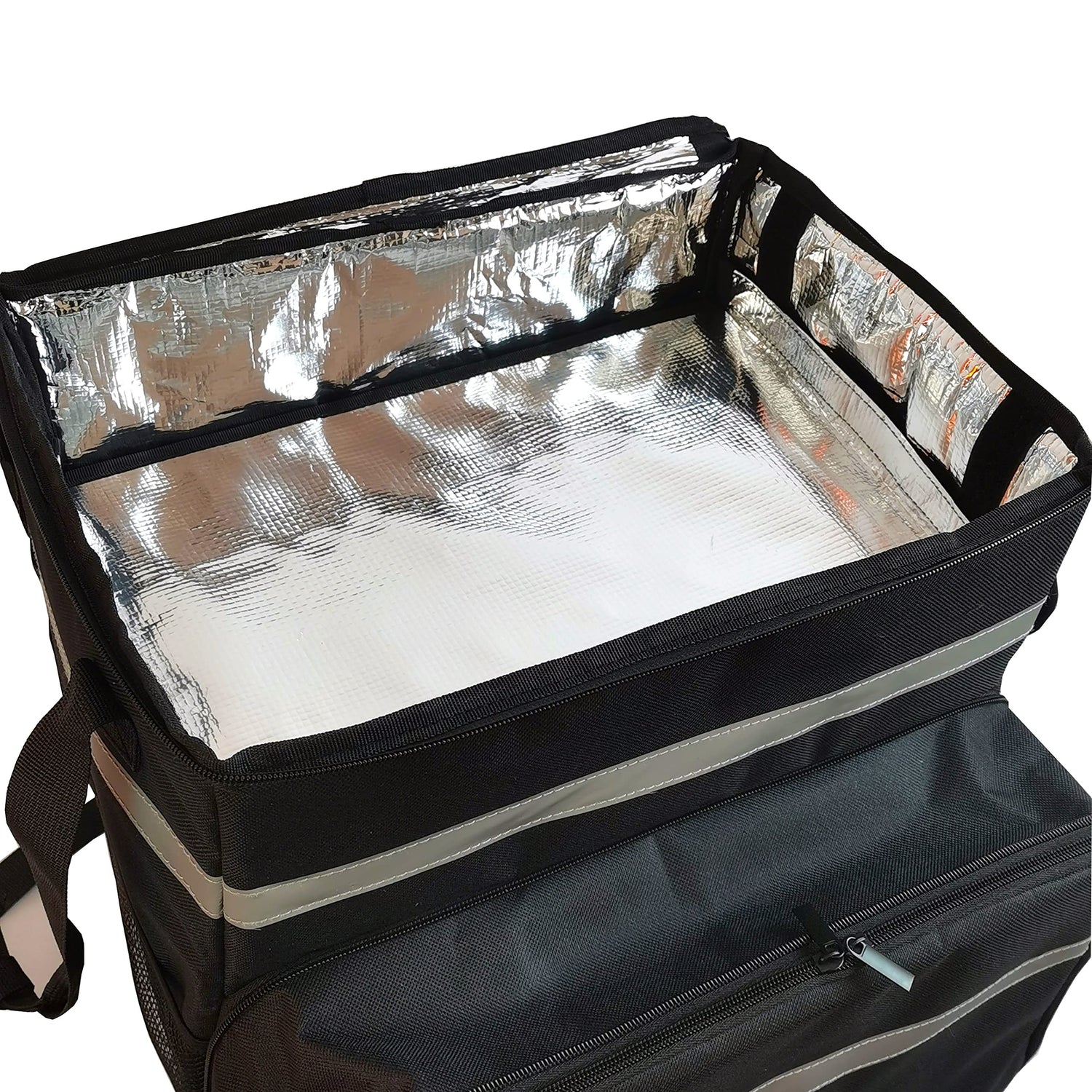 Our insulated delivery backpacks are perfect for bicycle, car, and motorbike couriers working for delivery services such as Uber Eats (UberEats), Skip the Dishes, Doordash, or any restaurant/takeaway shop that has a delivery service. This delivery bag features thick shoulder straps, an adjustable chest harness, and a breathable back panel for additional comfort. This bag features a removable divider so you can separate orders and hot/cold items. To ensure a safe delivery experience, this delivery bag has reflector panels that increase visibility in low-light conditions.
