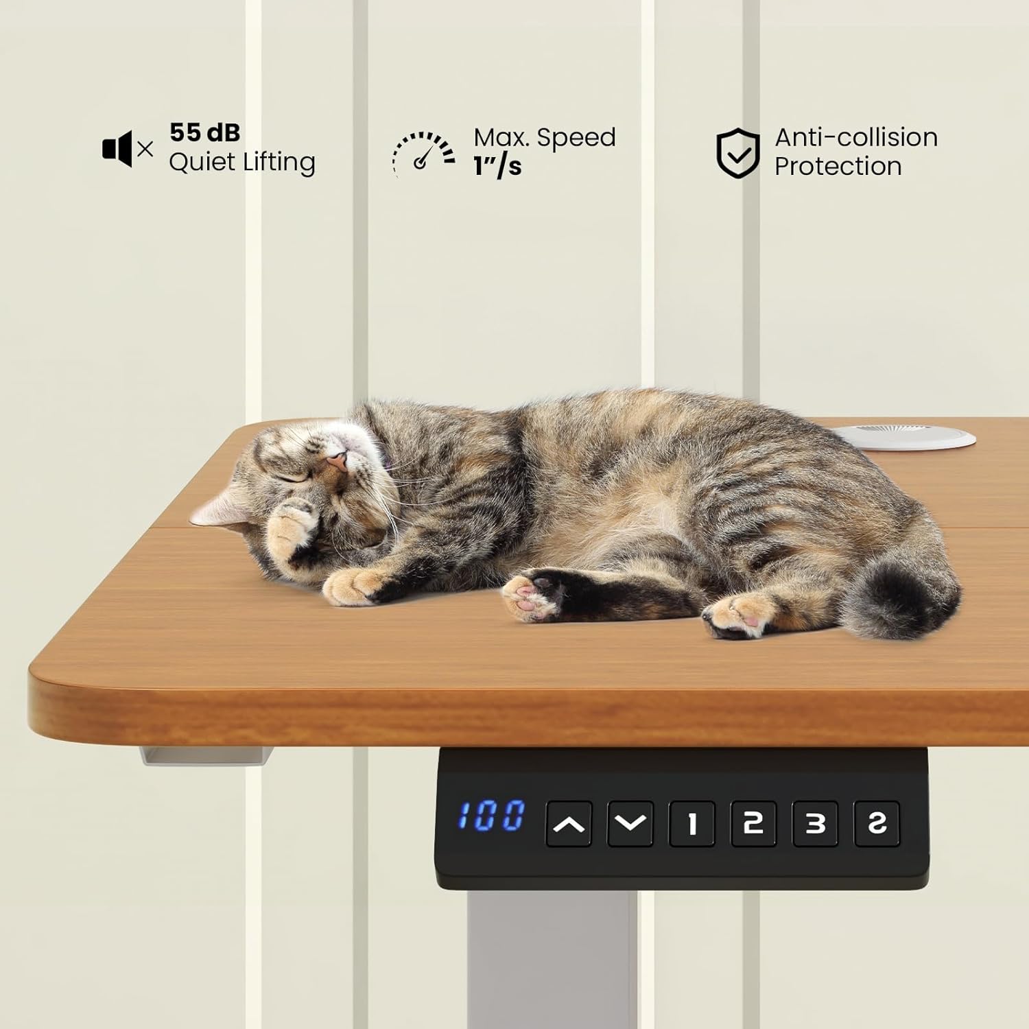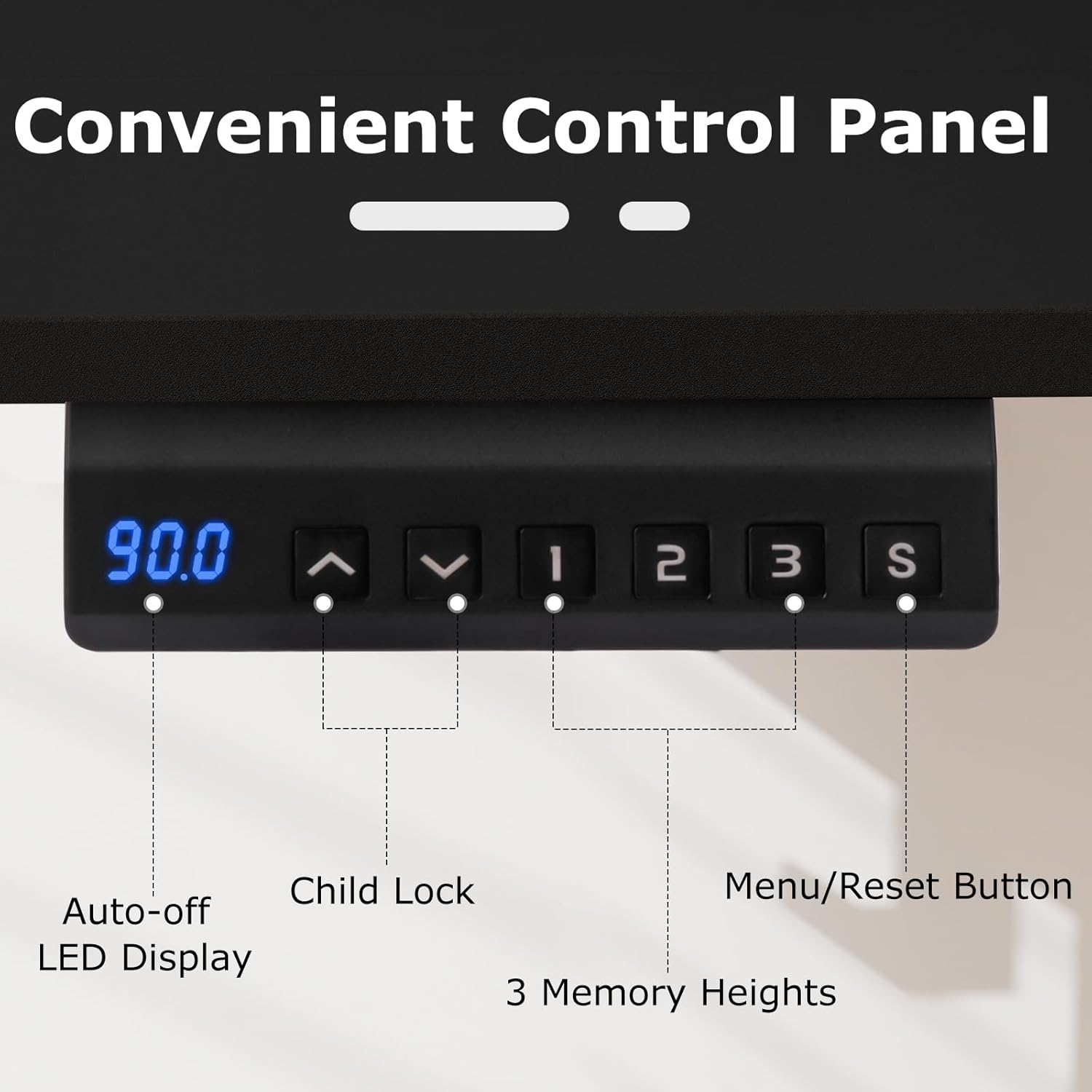 - Intelligent Desk Controls: The user-friendly control panel offers an LED display, 3 customizable memory presets, and a menu/reset button for easy operation. The sit-to-stand desk adapts to your personal preferences with the push of a button.