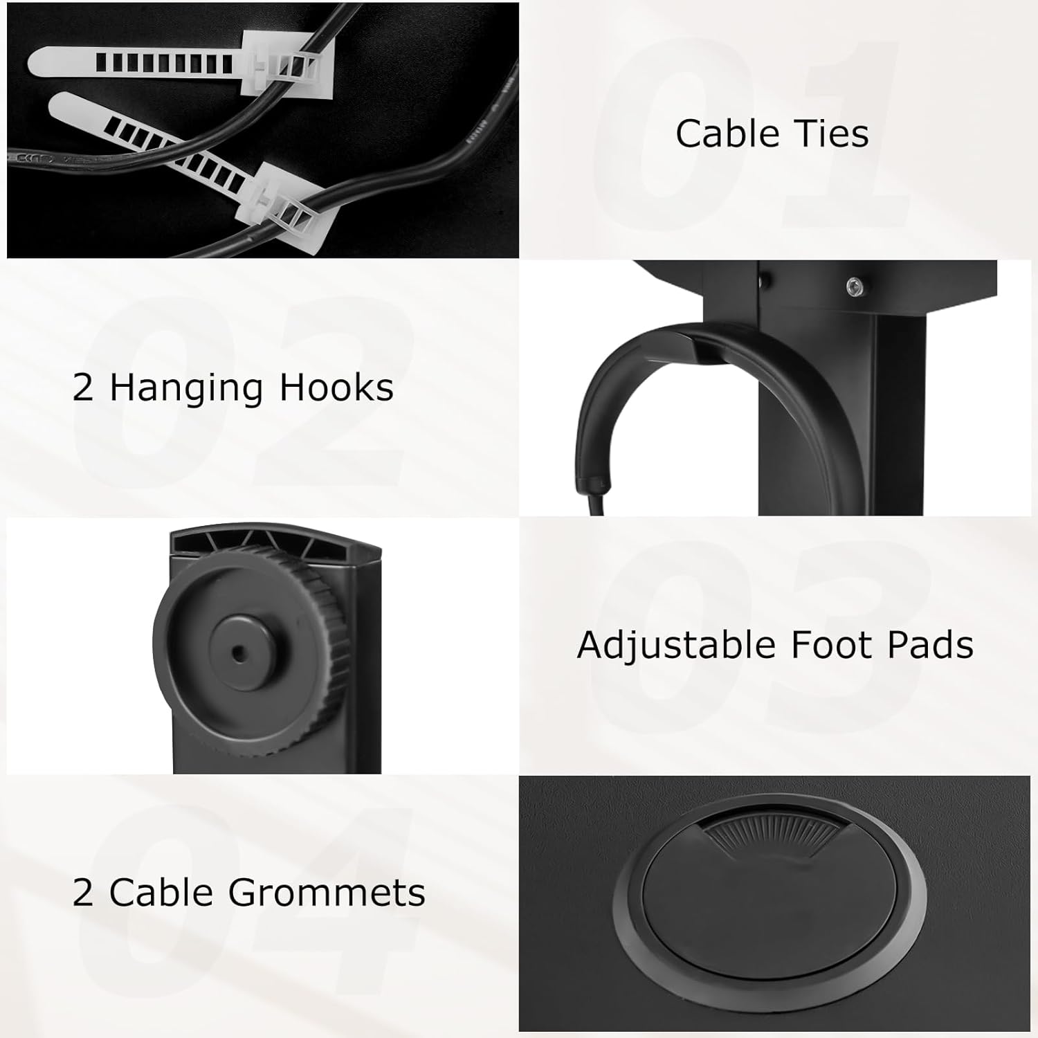 - Enhanced Organization Features: Enjoy the added convenience of the adjustable desk's built-in hanging hooks and sleek cable management system. It allows for easy accessory storage and uncluttered cable routing to maintain a clean and tidy work area.
