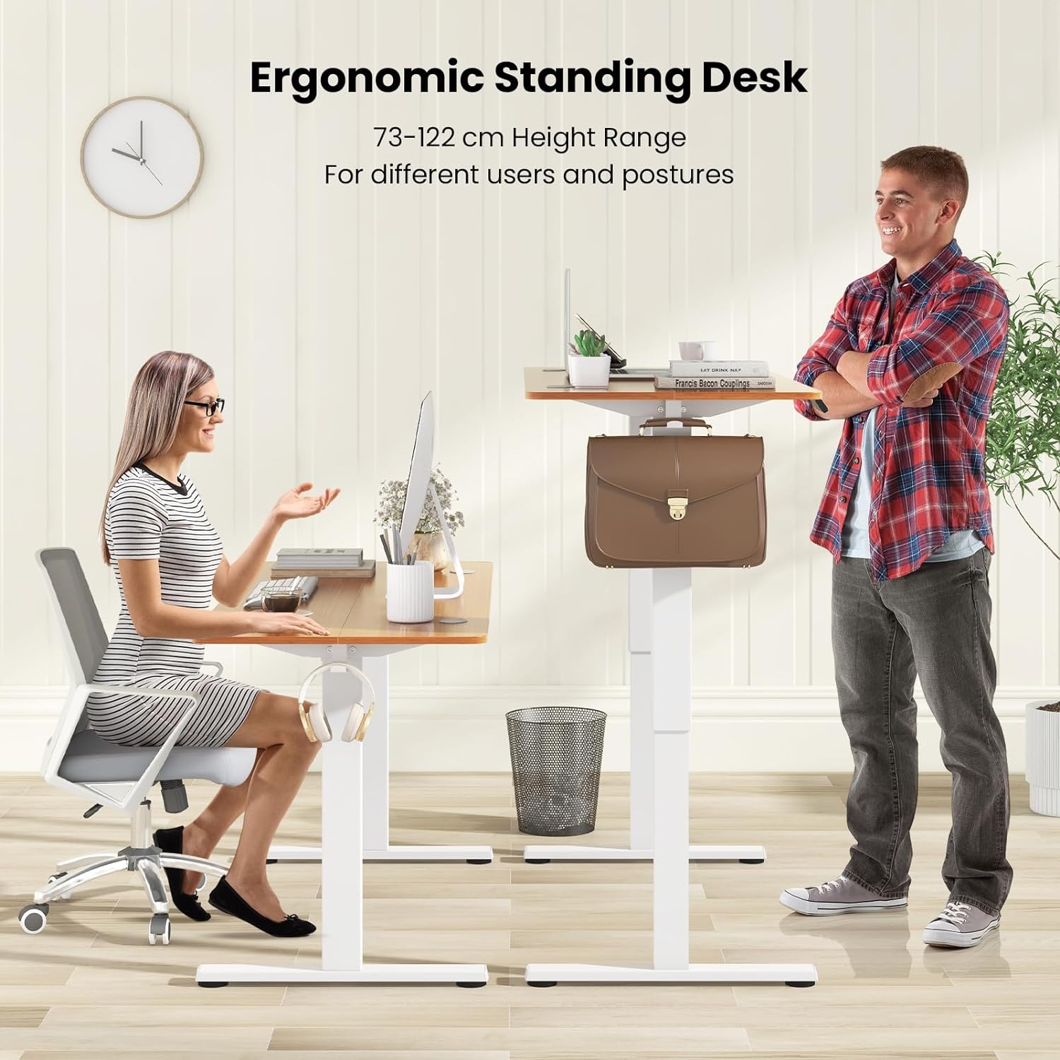 - Smooth Height Transition: Embrace the freedom to adjust the office desk height effortlessly with the electric motor system. Glide from 73 cm to 122 cm in height to find your ideal ergonomic position, minimizing discomfort and fatigue during long hours of work.