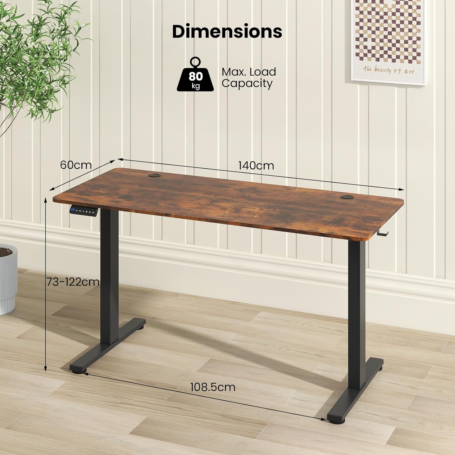 - Generous Work Area: Experience the luxury of space with the 140 x 60 cm tabletop standing desk. It provides ample room for multiple monitors, office supplies, and accessories, ensuring you have all the space needed for peak productivity and creativity.