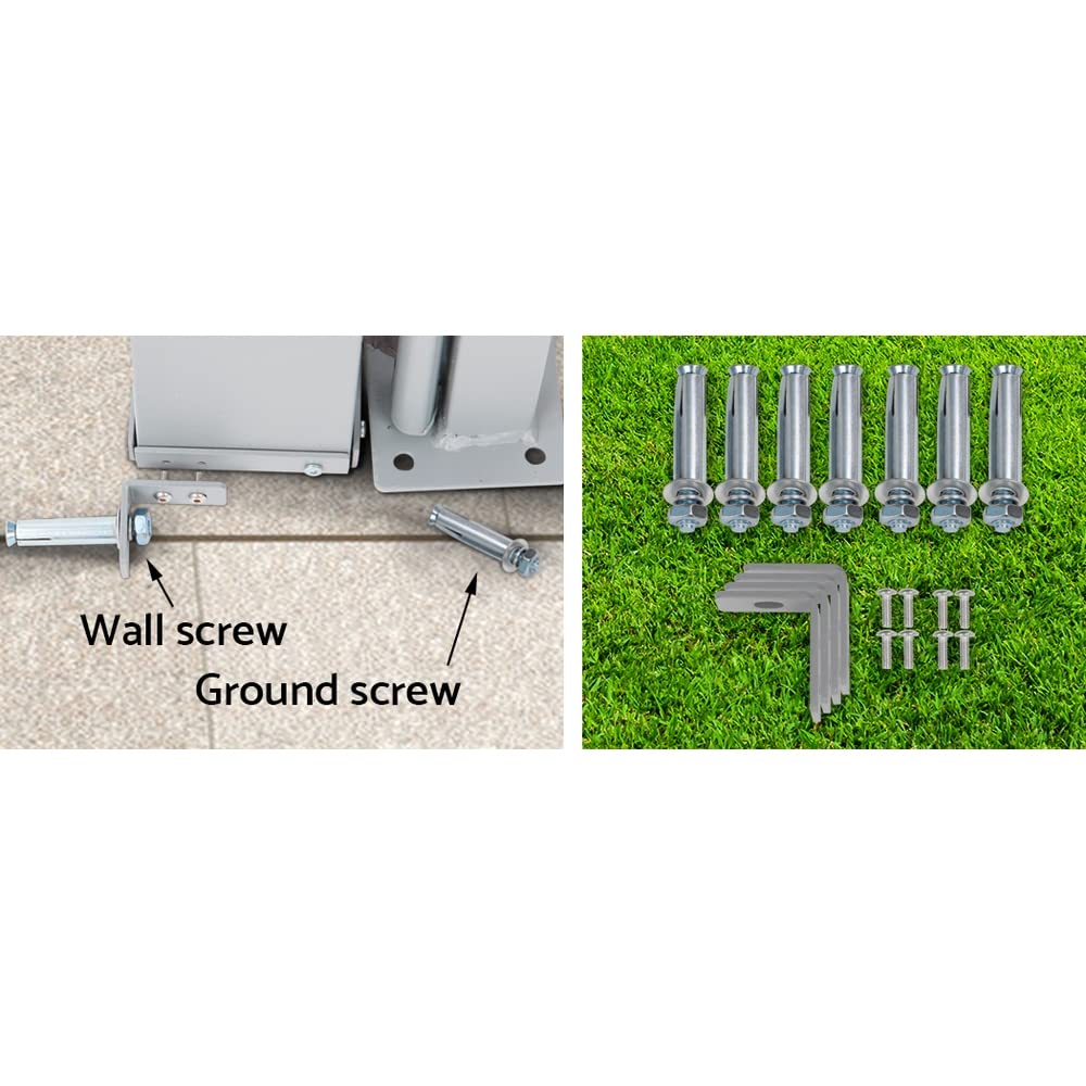 - Sturdy Structure: Constructed from a strong steel frame reinforced by the supplied wall and ground screw for stability and durability.