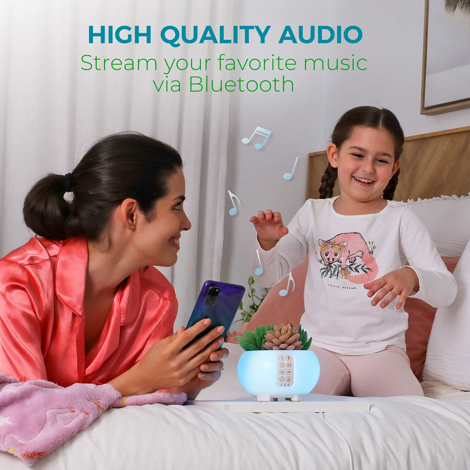 Oasis White Noise Machine Baby Night Light - Baby Cry Activated - Timer - Bluetooth Speaker - Cute Room Decor - Sleep Sound Soother with Baby Shusher, WhiteNoise, Lullaby's and Soothing Nature Sounds for Newborn Babies, Kids, Adults, Baby Gifts (Vibrant)