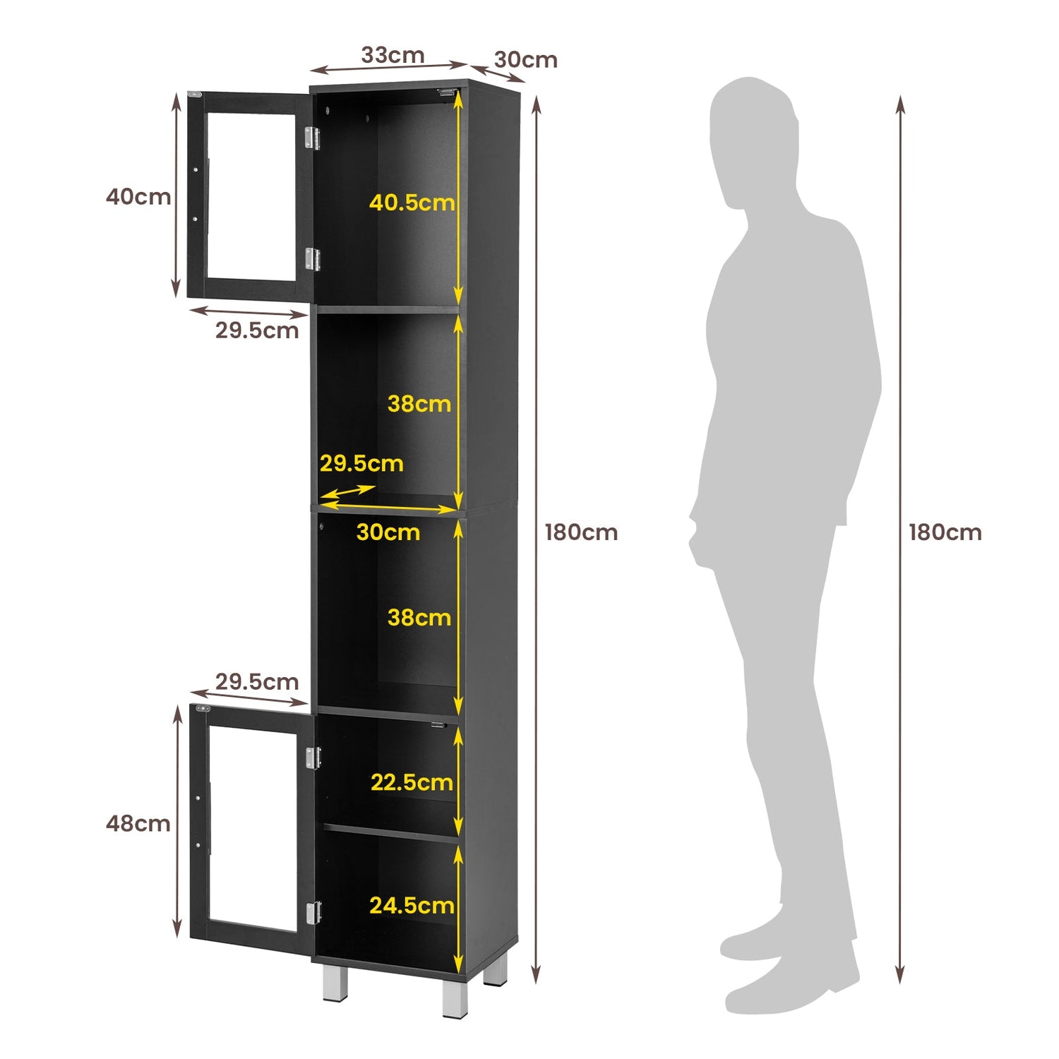 Bathroom Storage Cabinet Tall 5Tier Toilet Cupboard Glass Door White/Black 180CM