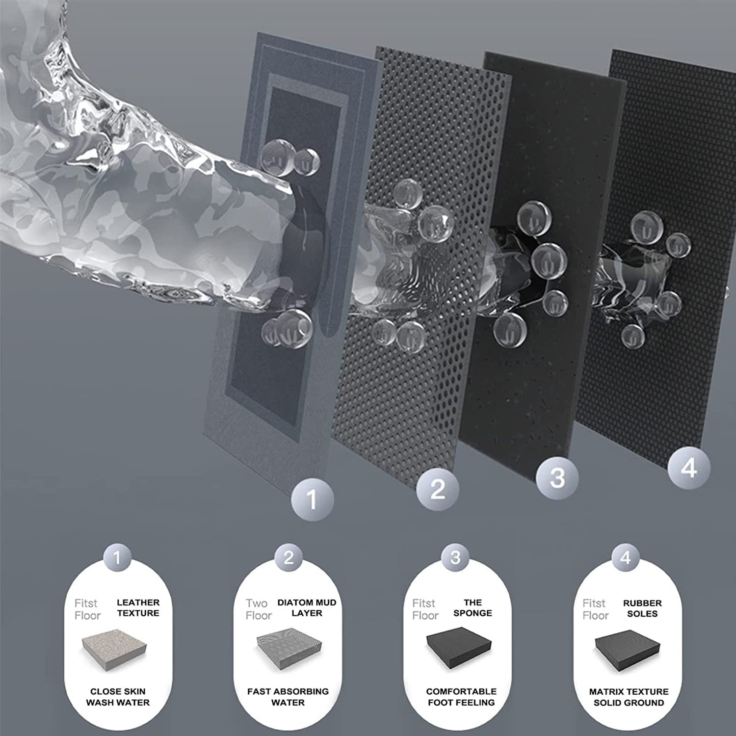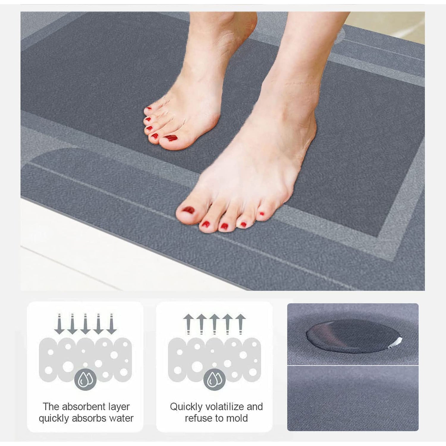 - ULTRA WATER ABSORBENT: The absorbent bath mat use superior eco diatomite has thousands of small holes on the surface, with super absorption function, mildew proof, eliminate bad odors, release anions to improve your life.
