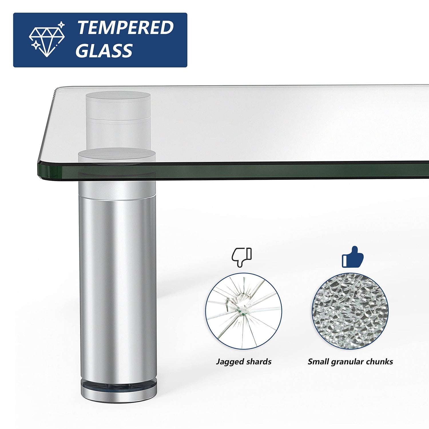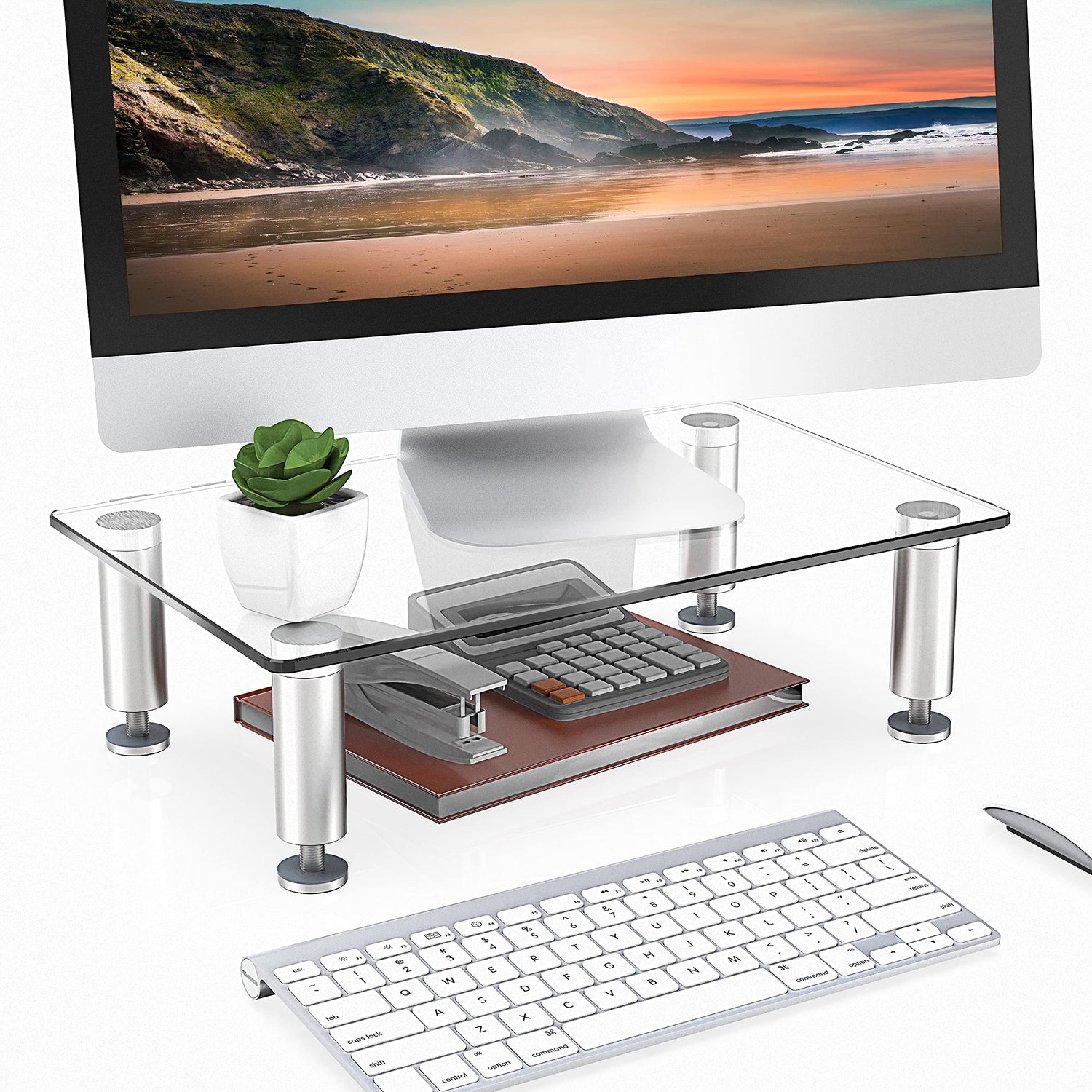 Height Adjustable Ergonomic Monitor Riser with Tempered Glass Platform for Computer, Laptop, iMac