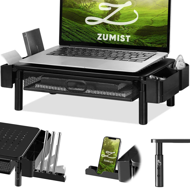 - Multi-functional Design: Zumist Monitor Stand Riser comes with a pen holder, phone holder, and metal mesh drawer. Zumist Monitor Stand Riser is convenient to save space and get organized to keep the desktop clean and neat. Zumist Monitor Stand Riser is great for improving your efficiency and productivity.