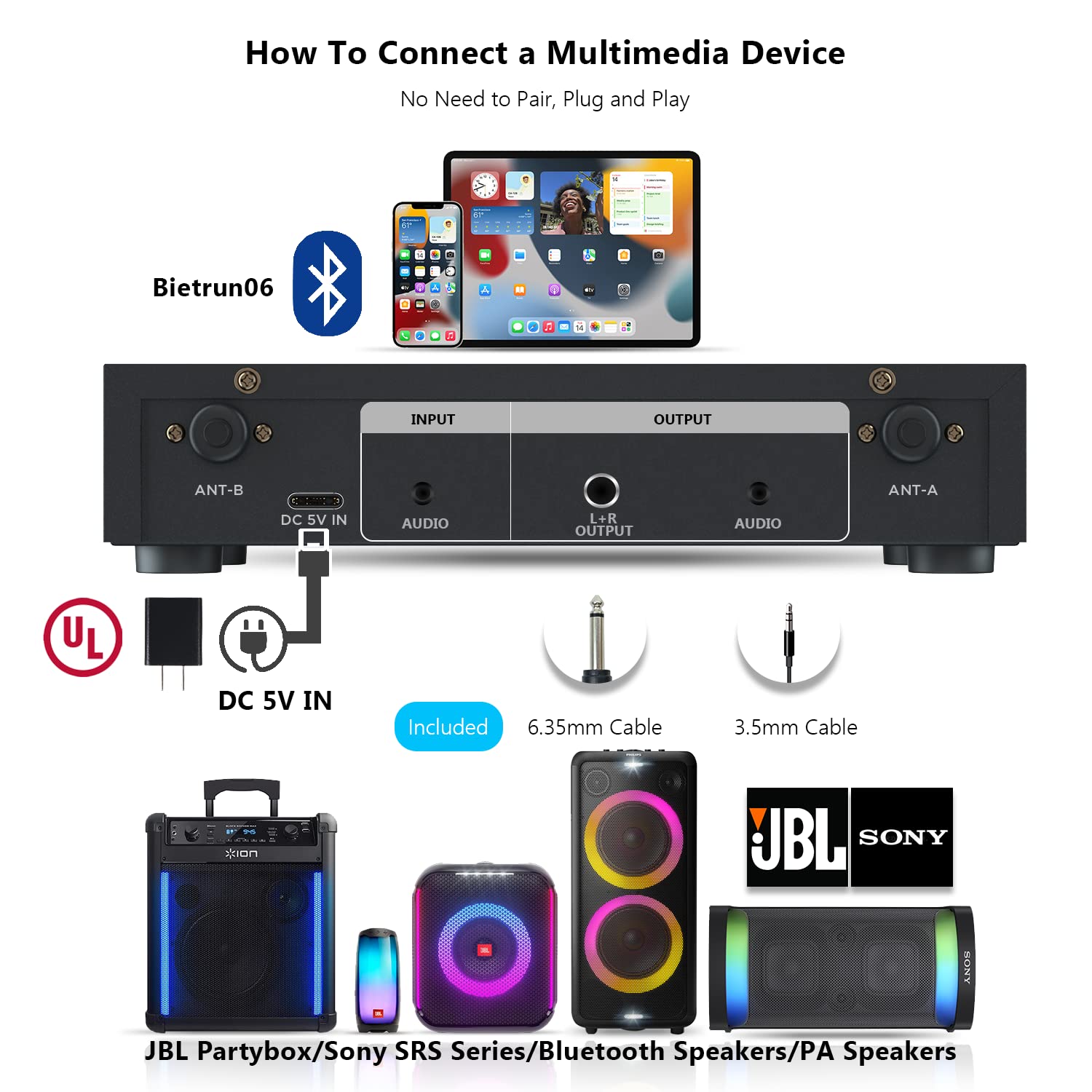 • Packing List And 1-Year Warranty: Bietrun Offers a 1-Year Warranty And Free Replacement Service, If You Have Any Questions, Please Contact Us Anytime. Packing List: 2*Rca Cable, 1*1/4'' Cable, 1*Ul Certification Adapter, 1* Singer, 2* Microphone, 1*Usb Cable, 2* Microphone Protector. Please Note: Please Put On The Battery Correctly. Receiver Size: 8.3 * 4.5 * 2 Inch.