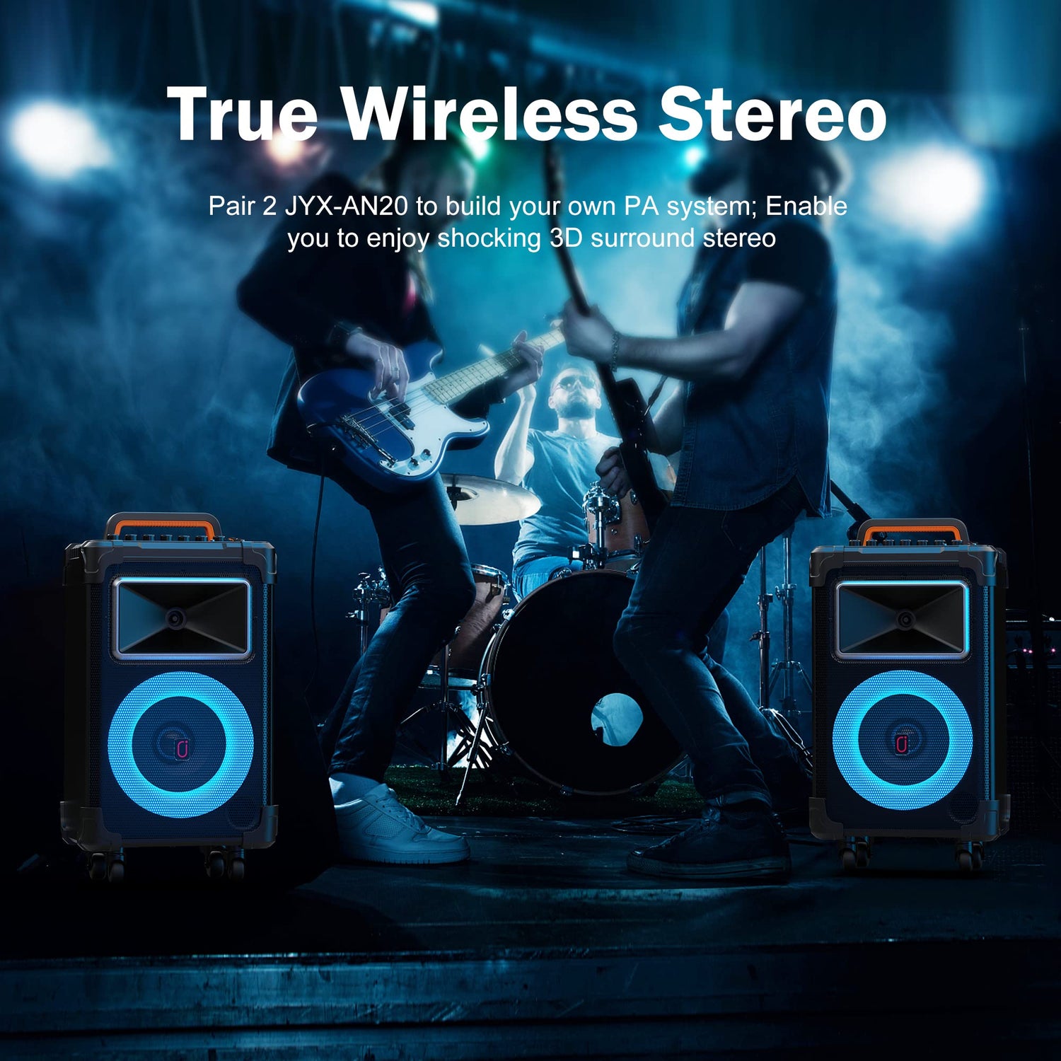 - TWS Connection Function: With JYX's powerful TWS feature, you can connect two speakers to form a dual-karaoke speaker system, which allows you to build your own PA System. You'll love how the two of them play together. Turn them up, and get crazy sound effects.