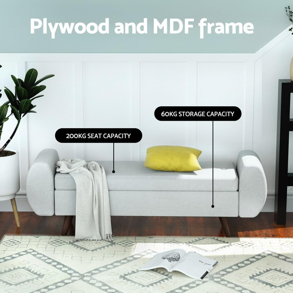 Storage Ottoman Blanket Box Bench Armrest 140cm Seat Chest Linen Grey
