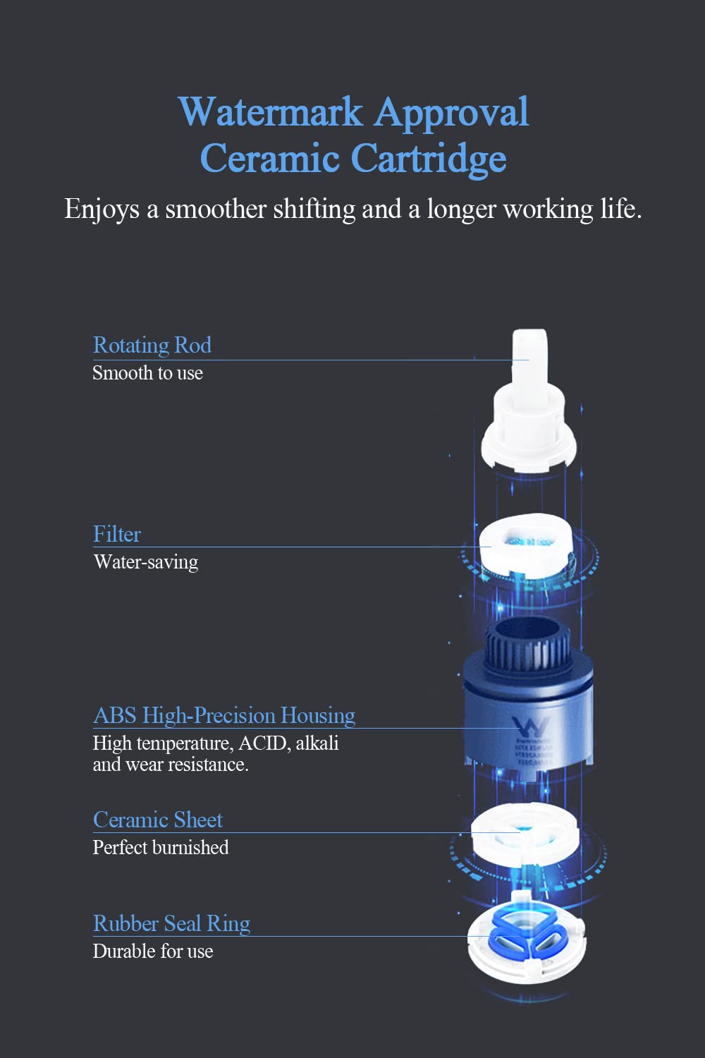 • CERAMIC CARTRIDGE: It features a 35mm drip-free ceramic cartridge that ensures long-lasting performance for absolute durability and reliability.
