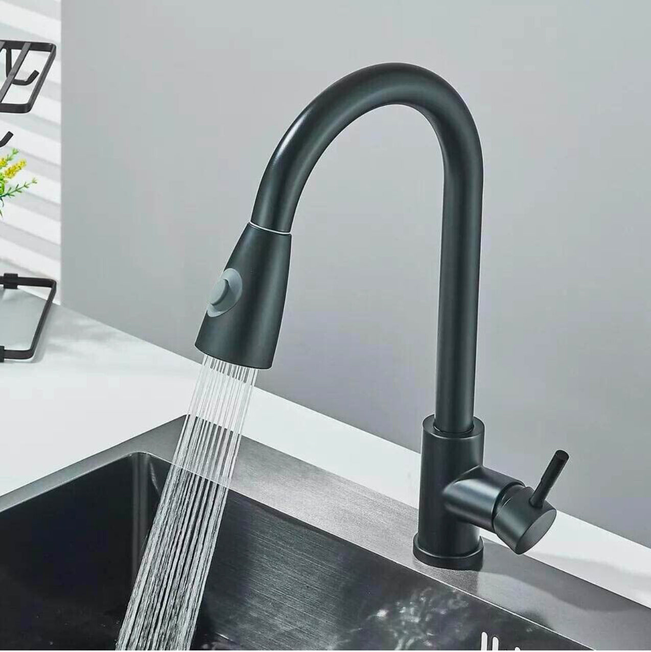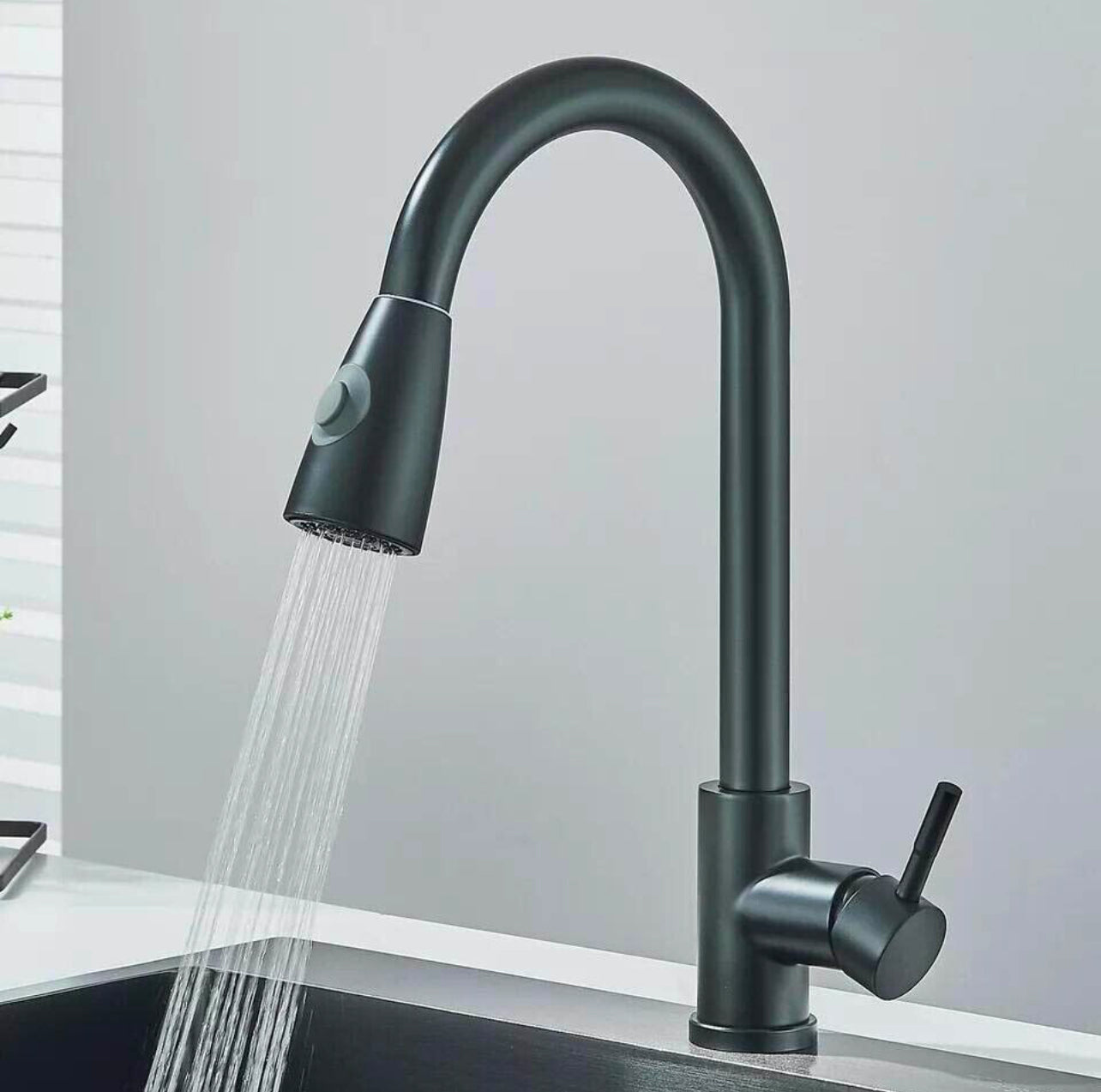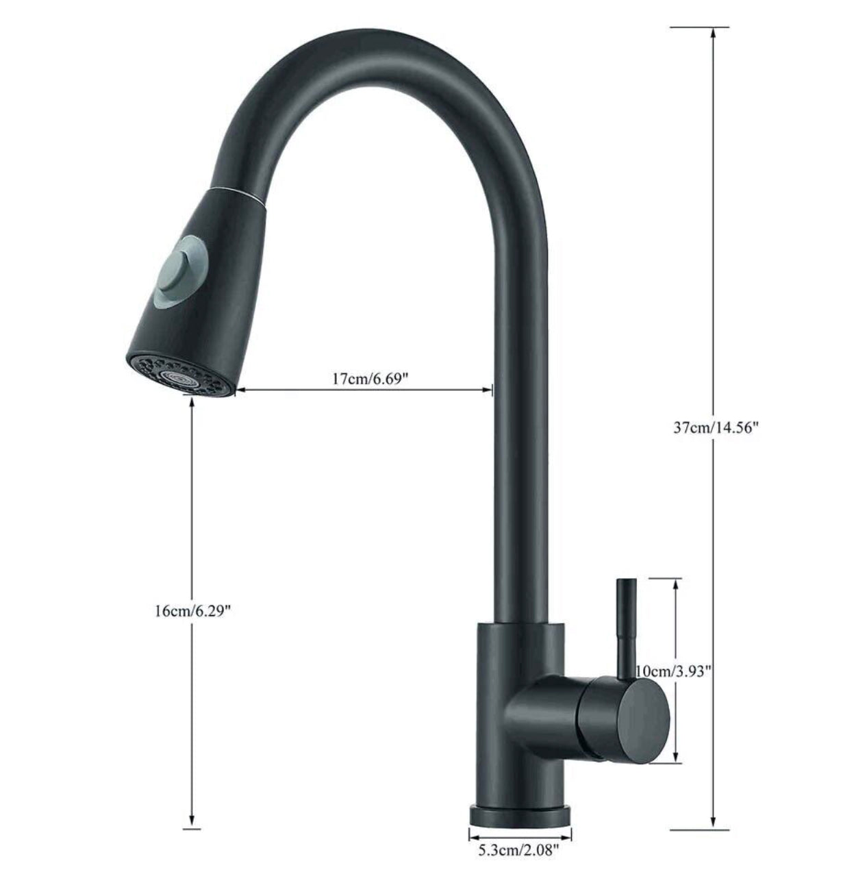 WELS Kitchen Mixer Tap Black 360° Pull Out 2-Mode Spray Laundry Sink Faucet