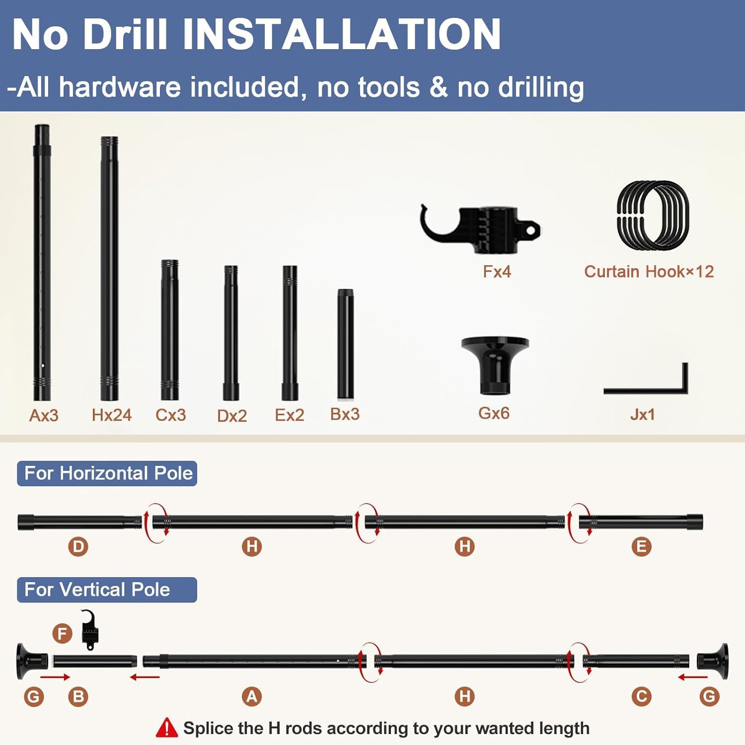 - Easy to Install & Remove: The room divider curtain rod can be installed and removed in minutes; no tools required. And it's detachable which is very convenient for storage, carrying and reuse.