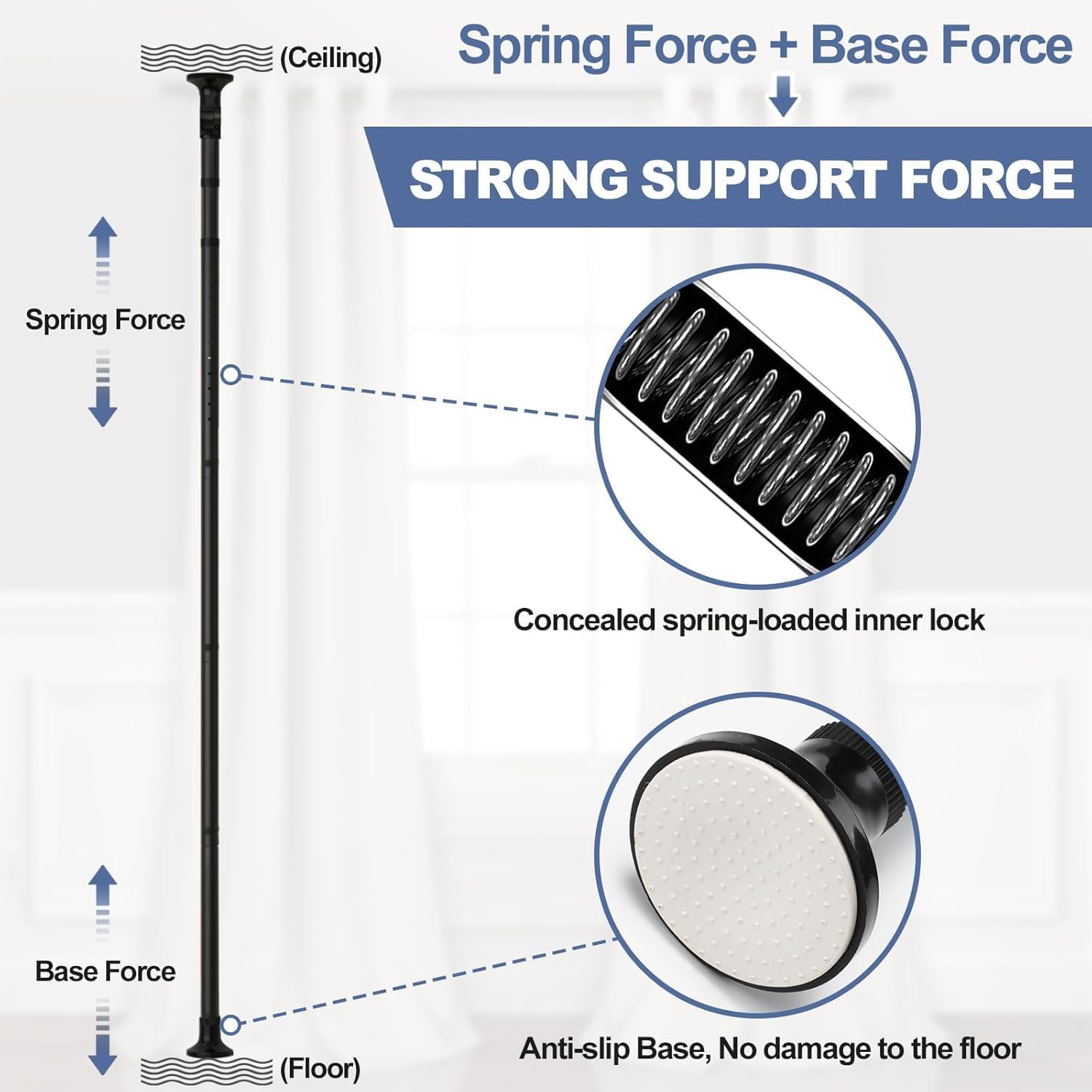 - Durable & Strong Load-Bearing Capacity: This room divider rod is made of solid stainless steel, rust-proof and durable. It can withstand up to 40 lb which suitable for any type of curtains, such as heavy blackout curtains, light tulle, rod pocket curtains, buckled top curtains.