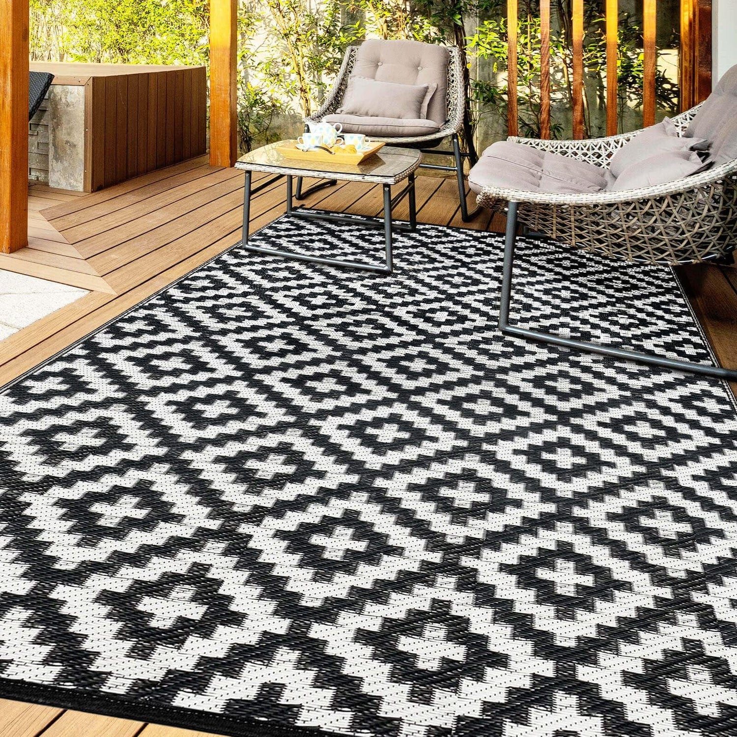 • REVERSIBLE MATS: With timeless design, this plastic patio rug is elegant as it is functional, use on your patio with outdoor furniture and accessories to show off your personal style.