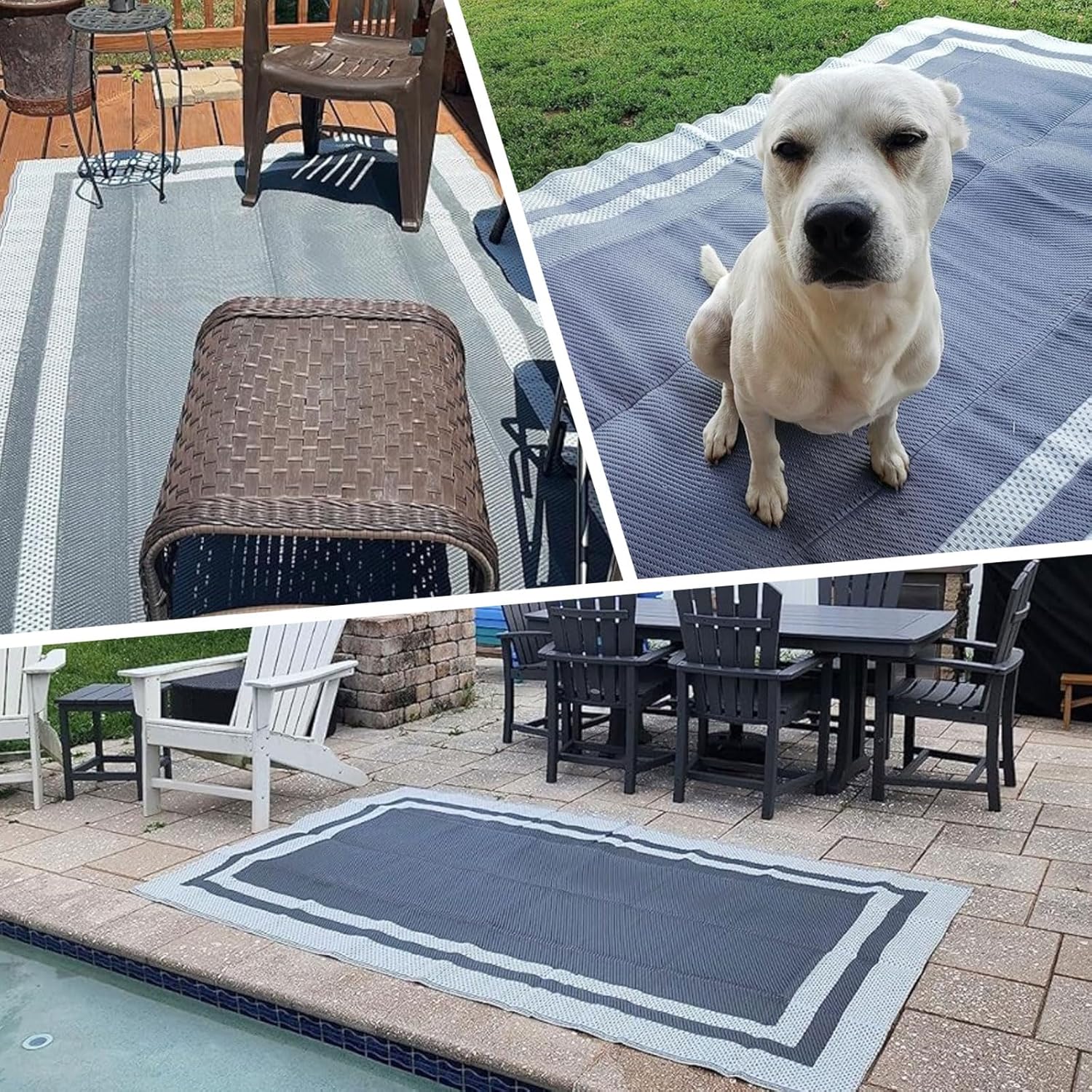 Outdoor Rug Reversible Portable Plastic Straw Camping Rugs for Outside RV, Patio,Picnic,Camper,Balcony,Porch (Grey and White B, 152 x 244 CM (5 * 8FT)) is backordered and will ship as soon as it is back in stock.