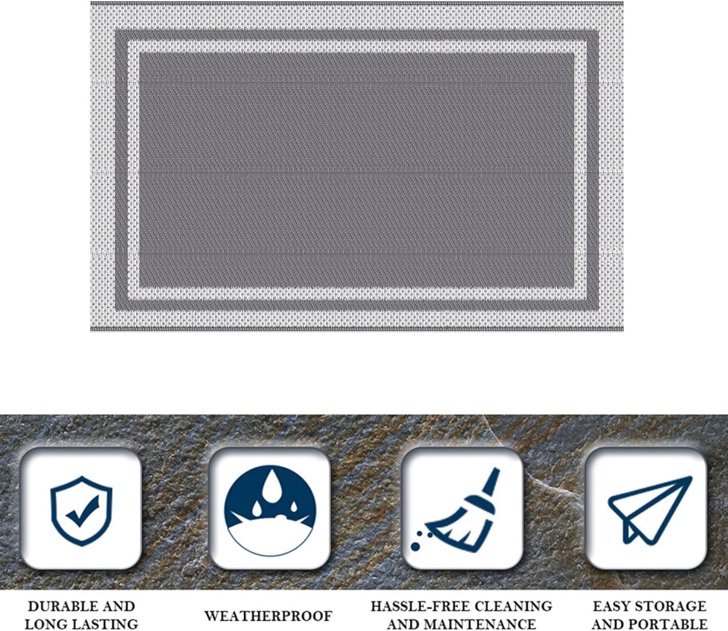 Outdoor Rug Reversible Portable Plastic Straw Camping Rugs for Outside RV, Patio,Picnic,Camper,Balcony,Porch (Grey and White B, 152 x 244 CM (5 * 8FT))