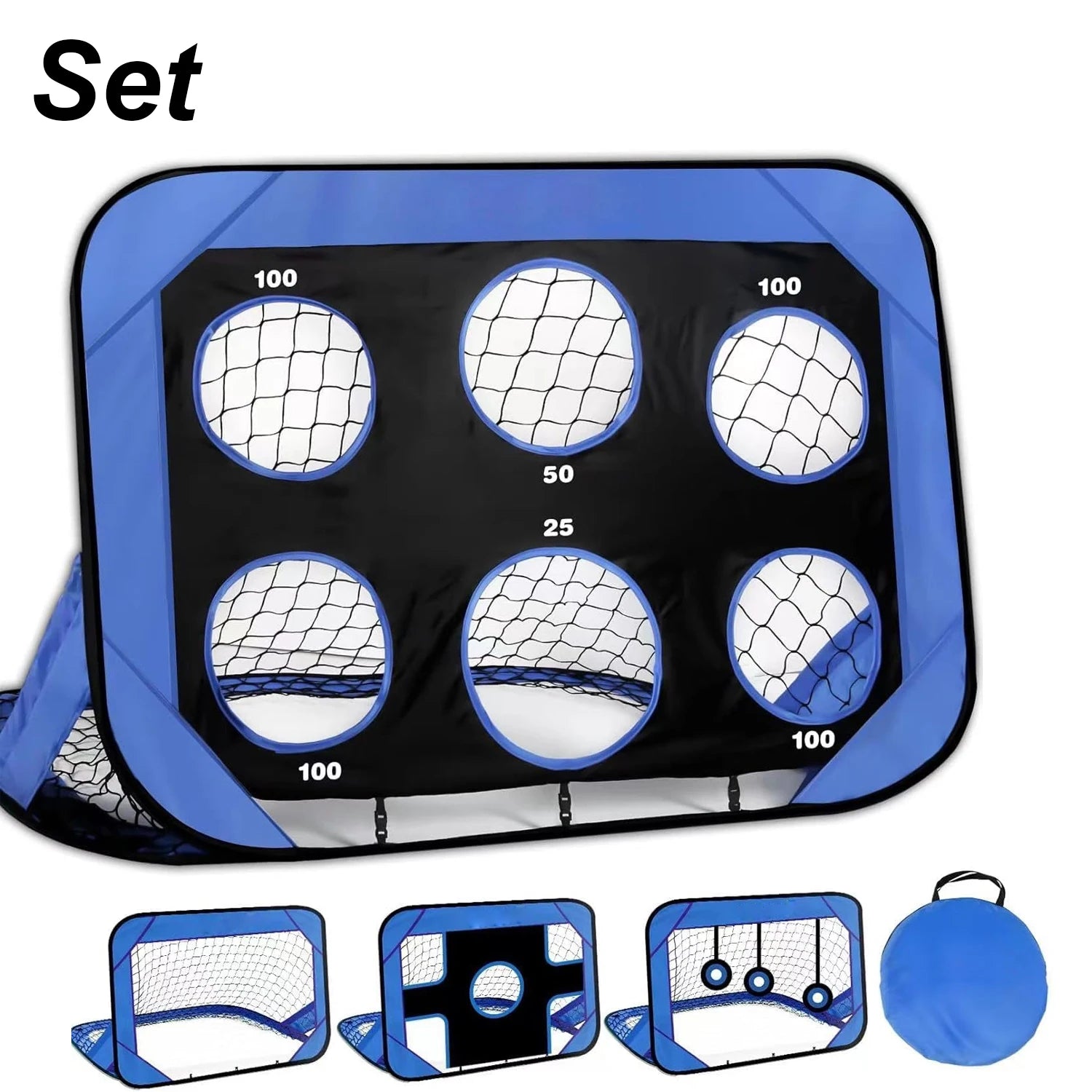 - 4-in-1 Design — Features a standard net for play, a 5-target shooting panel, 3 elevated aim points, and a 6-slot target net for precision training