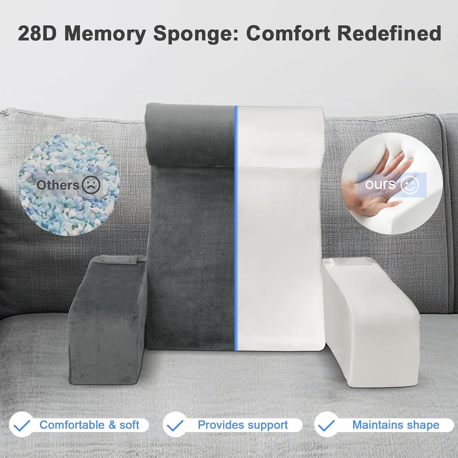 - Stable Support: The Roccar reading pillow, crafted from breathable high-density foam, retains its shape to deliver stable support consistently—unlike ordinary shredded foam pillows that sag over time.