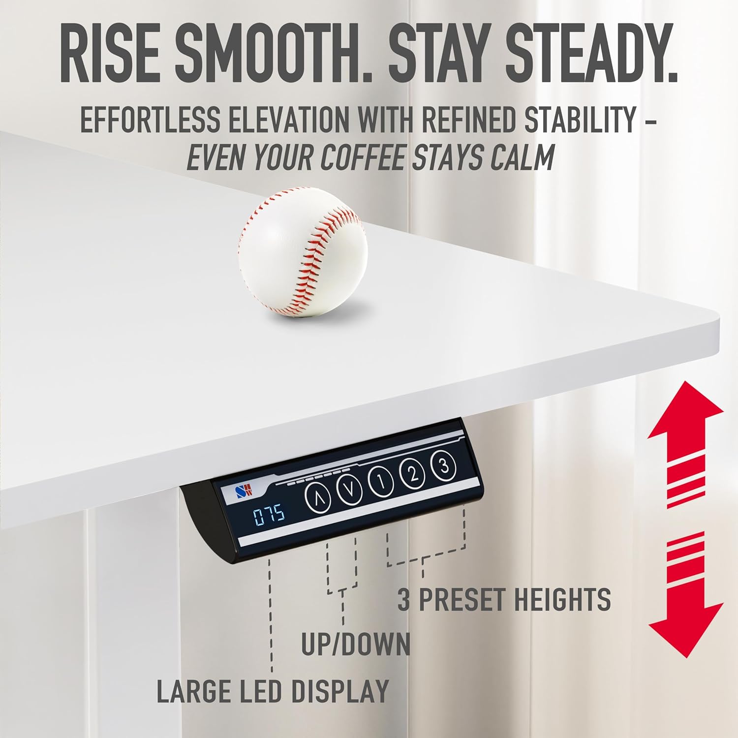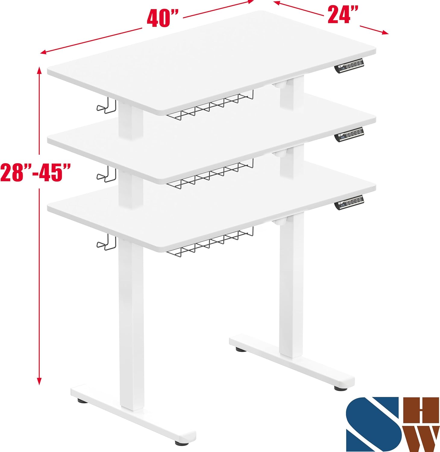 Electric Standing Desk, Whole Piece Desktop Height Adjustable Sit to Stand Desk with Hanging Hooks and Cable Management, White Frame with White Top 100 x 55 cm - Maple is backordered and will ship as soon as it is back in stock.