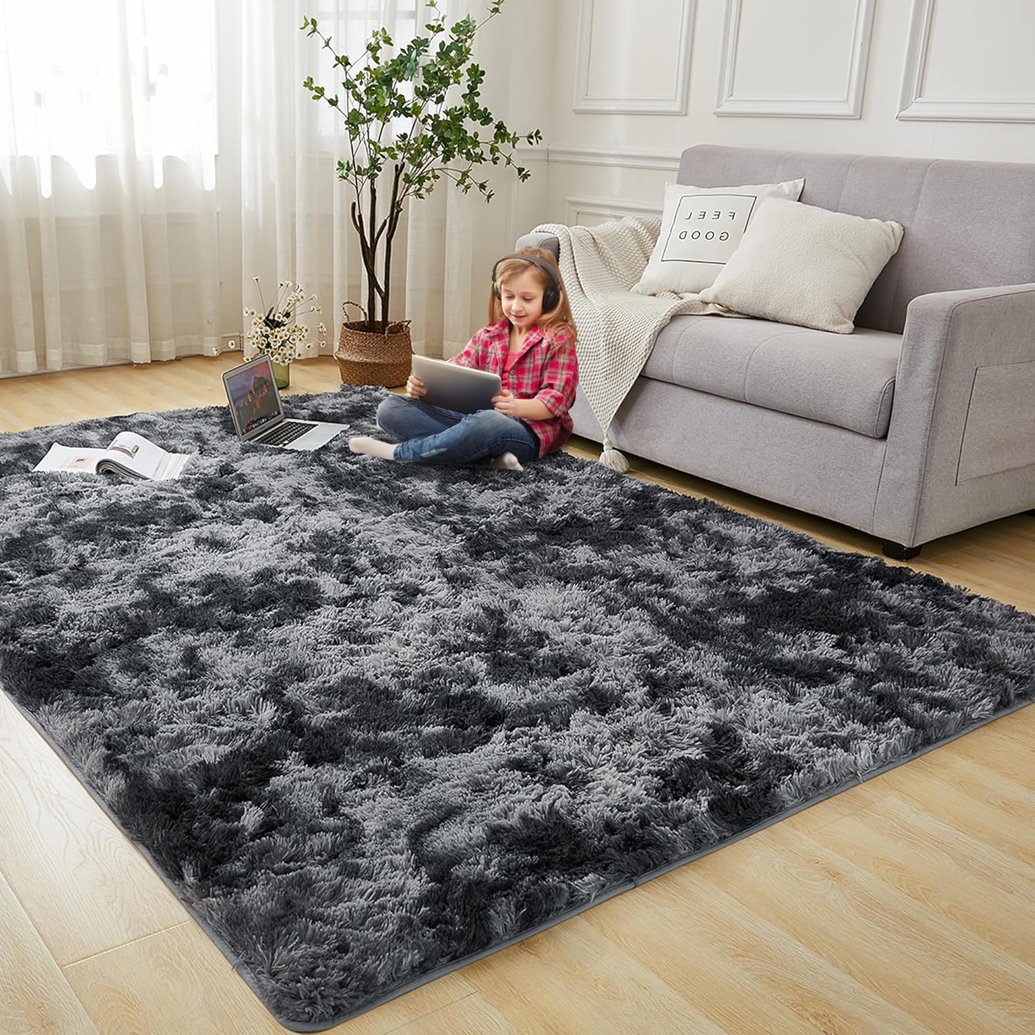 - ⭐[ Super Soft Shag Area Rug ] - Our soft fluffy rugs are made of shaggy velvet and sponge inter layer,which makes more comfy and soft for your bedroom and living room.Creating a cozy area for kids and your home.