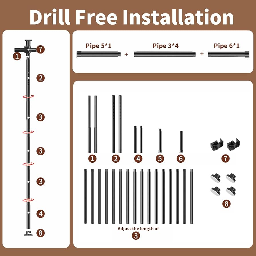 Room Divider Curtain Rod No Drilling, Wall Divider for Room Separation, 121-304cm(H) 71-177cm(W) Adjustable, Heavy Duty Floor to Ceiling Tension Curtain Stand, Black is backordered and will ship as soon as it is back in stock.