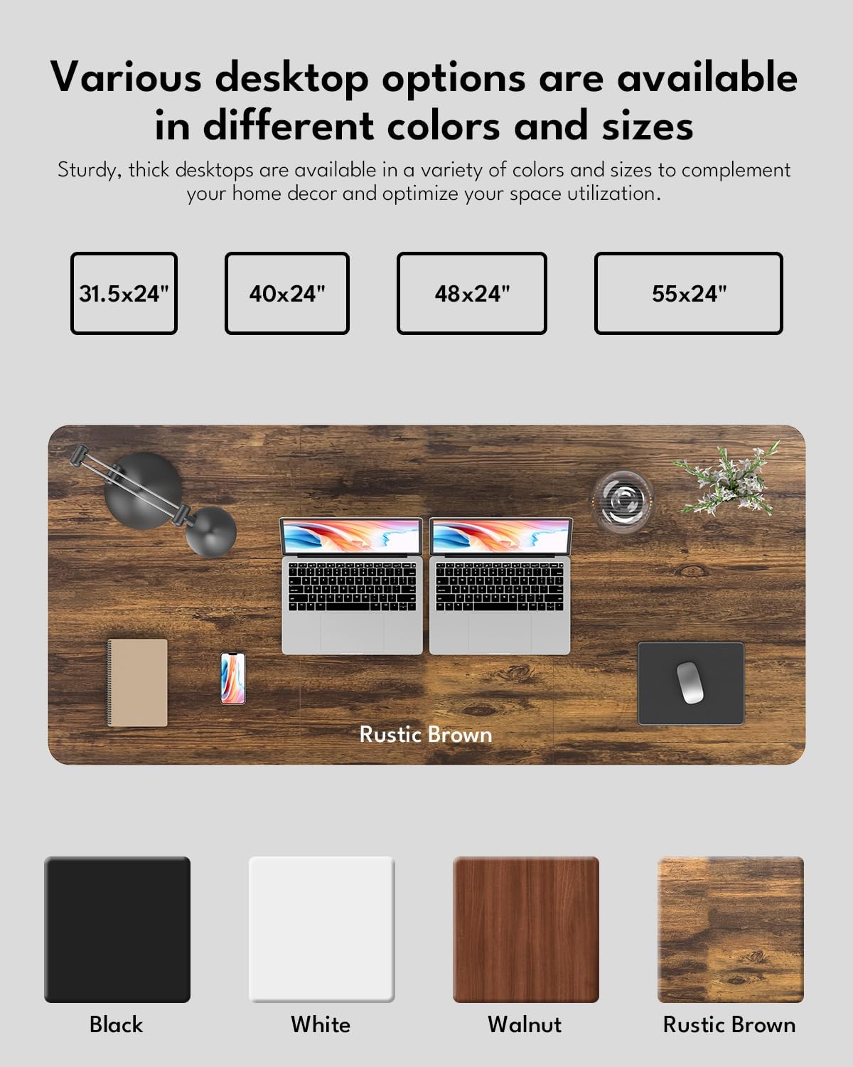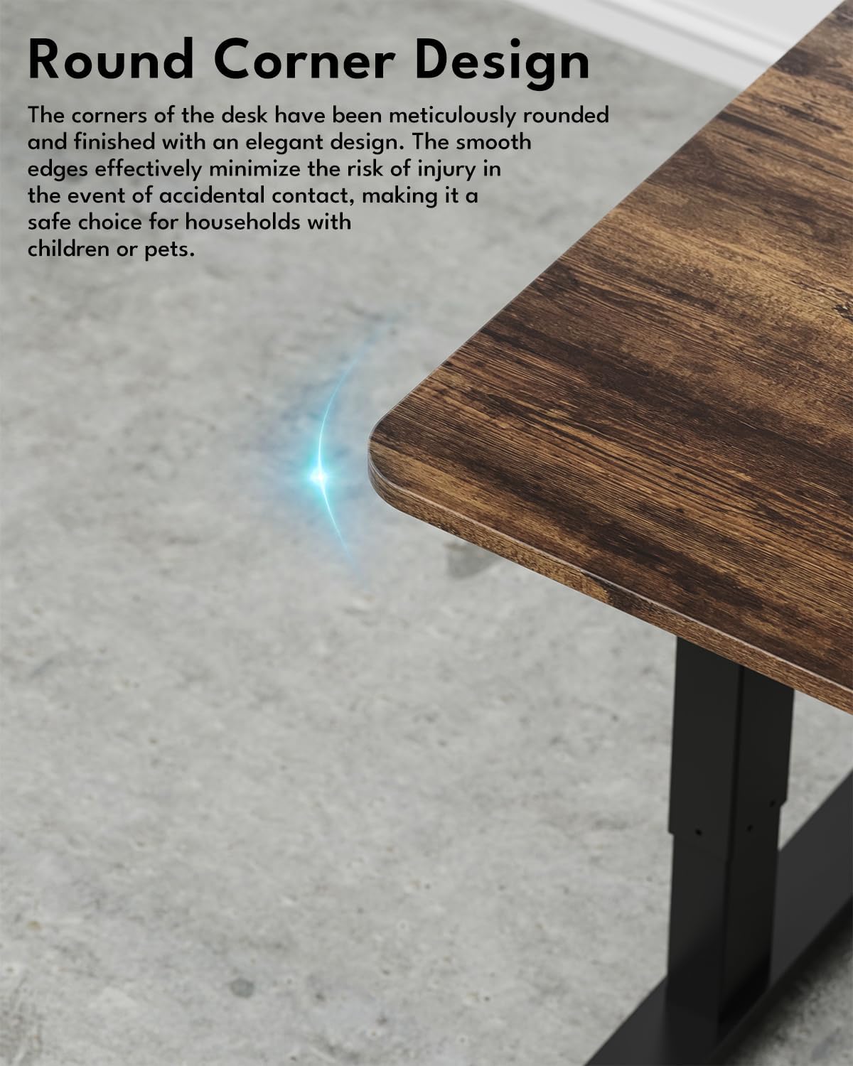 - Wood Desktop: The desktop is made of high-quality wood, significantly reducing formaldehyde and other VOC emissions. The table surface features a wood grain pattern, offering a fashionable and aesthetically pleasing design. Additionally, the tabletop provides ample space for various items, including computers, notebooks, working files, printers, and other office supplies.