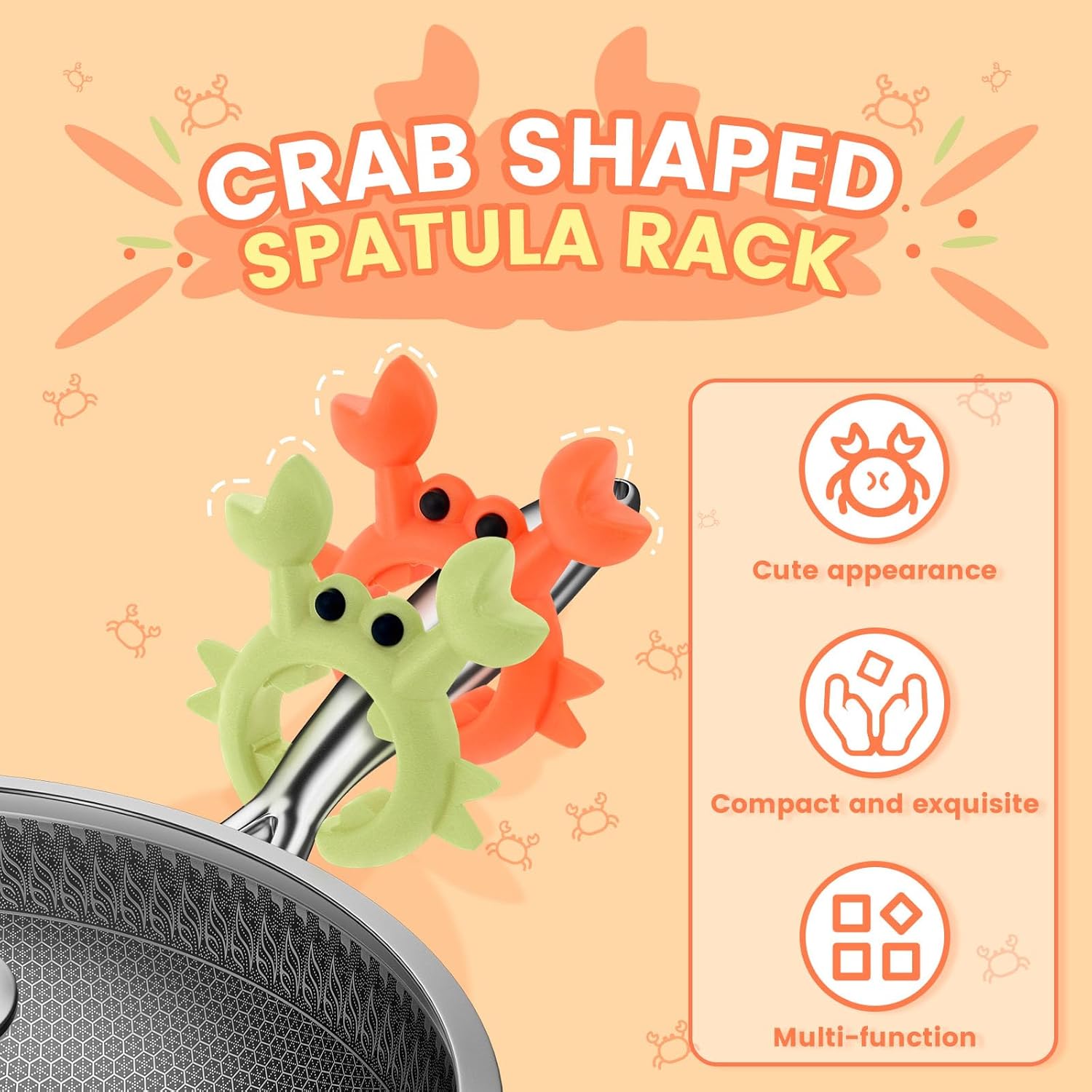 - Multifunctional Use: Our crab spatula rack clips directly onto the handle of the pan, securing spatulas or other cooking utensils to the pan or the edges of the pan. It allows the lid to be lifted slightly during cooking to allow steam to escape