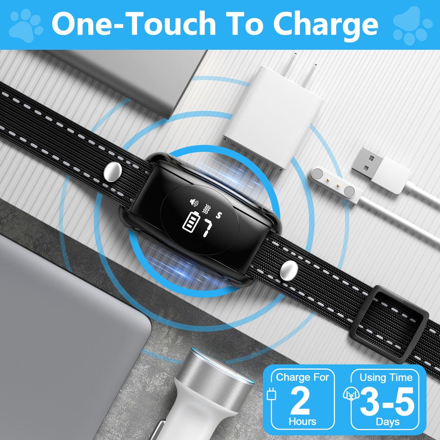 - 100% IPX7 Waterproof & Rechargeable: Anti bark collars for dogs is IPX7 waterproof rating designed for indoor and outdoor training in any weather conditions; It can withstand submersion in water up to 1 meter deep for up to 30 minutes, which meaning your dog with remote dog training collar can enjoy taking a bath, swimming or walking in the rain; No bark collar only takes about 2 hours to fully charge and can work for about 3-5 days