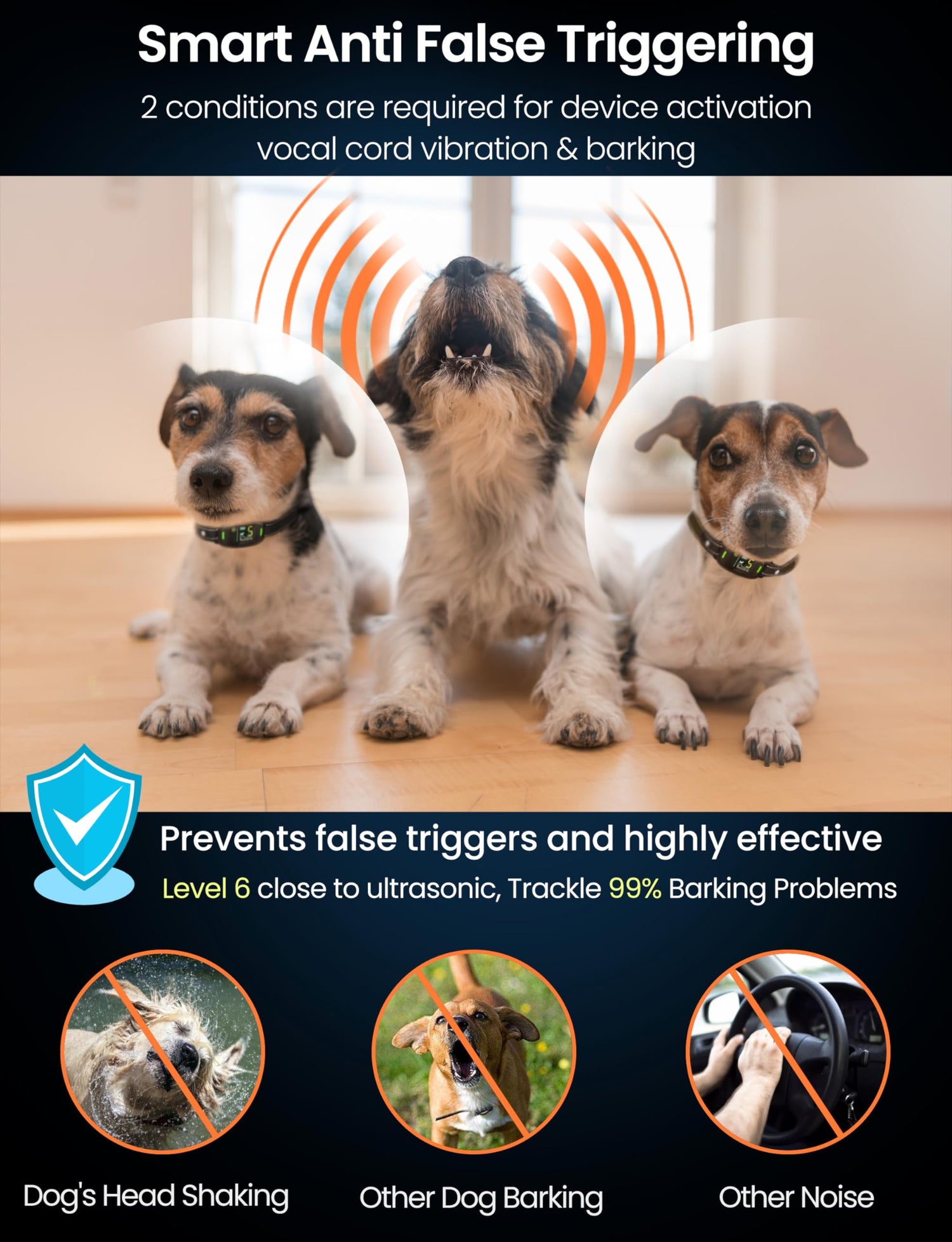 - Vibration and sound: The Dog Bark Collar Has 3 Working Modes(Beep, Vibration, Beep+Vibration) and 6 sound stages. Provide progressive bark training while remaining a no shock bark collar.