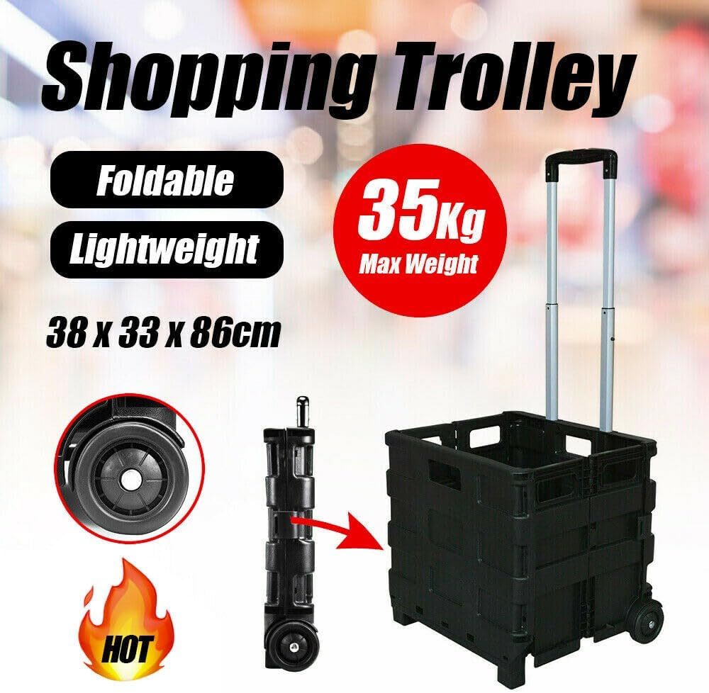• Package Content - Folding Carry Cart with Lid I Color: Black I Material: PP I Dimension: 38x33X36cm I Weight capacity: 35KGS I Equipped with casters for easy and smooth transport I Use it as carry-on luggage or place it under your seat on your trips I rust proof extendable glide handle, allows for different heights.
