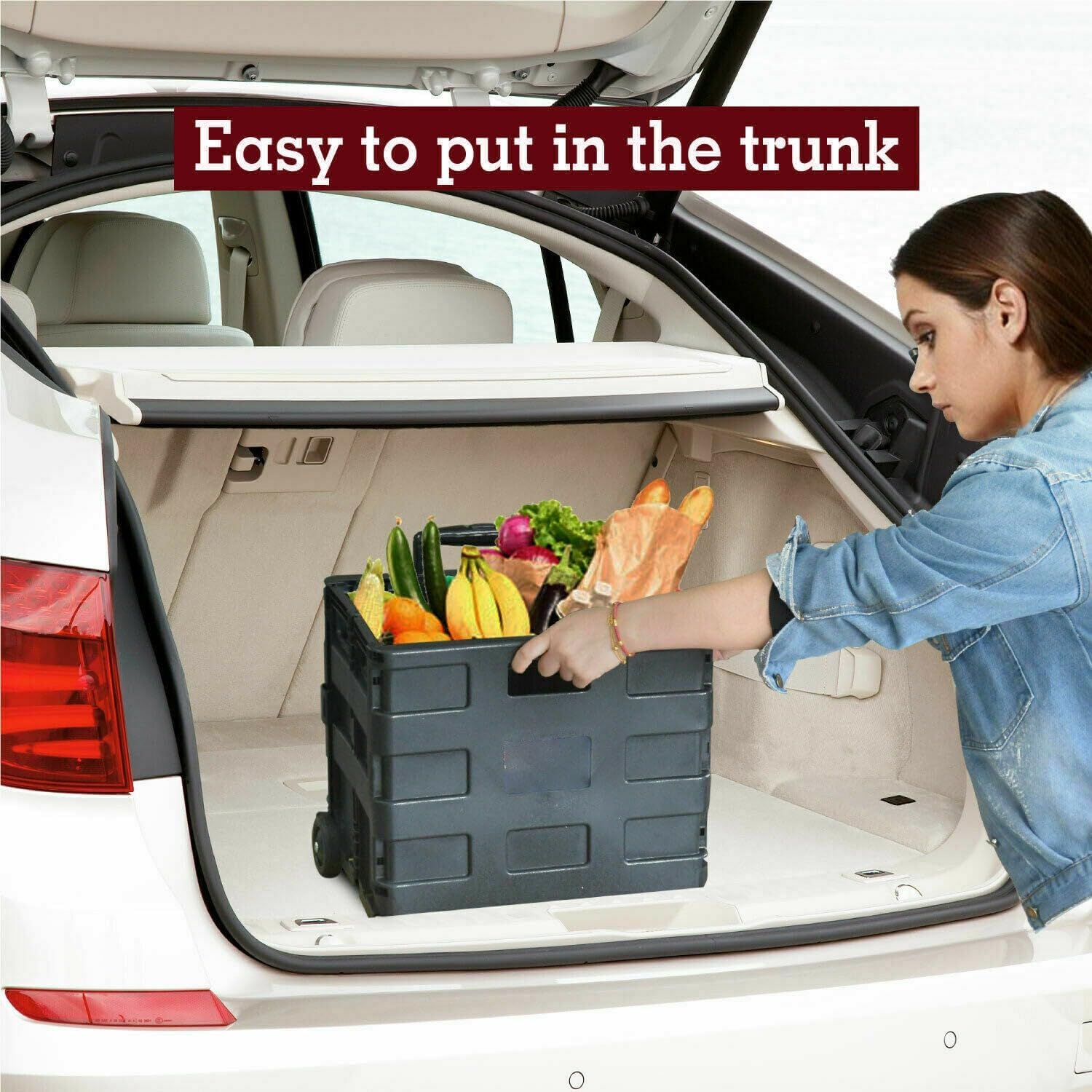 • This foldable carrying cart comes with a convenient lid that allows you to easily carry your items.