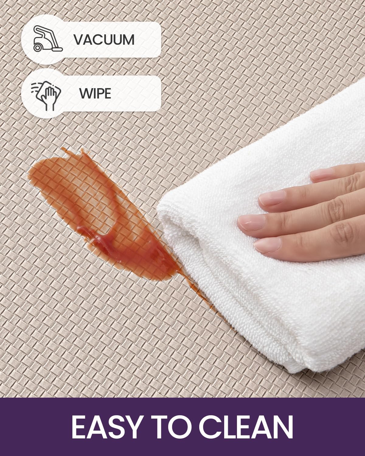 Its innovative design features a stain-resistant surface, which means edible oil and peanut butter splash clean up in a flash and the mat retains its like-new appearance even in high-traffic areas.