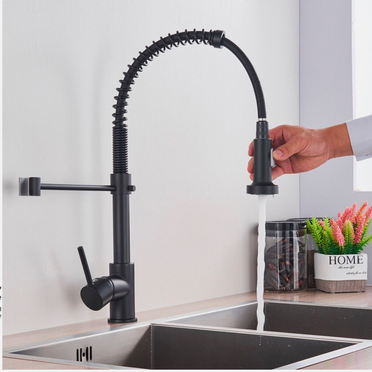 WELS Kitchen Mixer Taps Black Pull Out Sink Taps 360° Swivel Single Lever Faucet