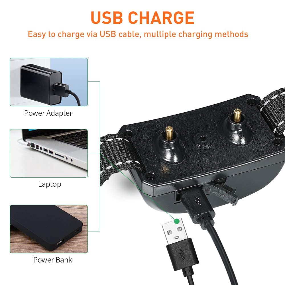 • USB RECHARGEABLE - A powerful Lithium Ion battery charges the bark collar in under 1 hour with a battery life that will last up to 14 days. With the convenience of USB technology, you can charge from any device with a USB port, and by using any micro-USB cable.