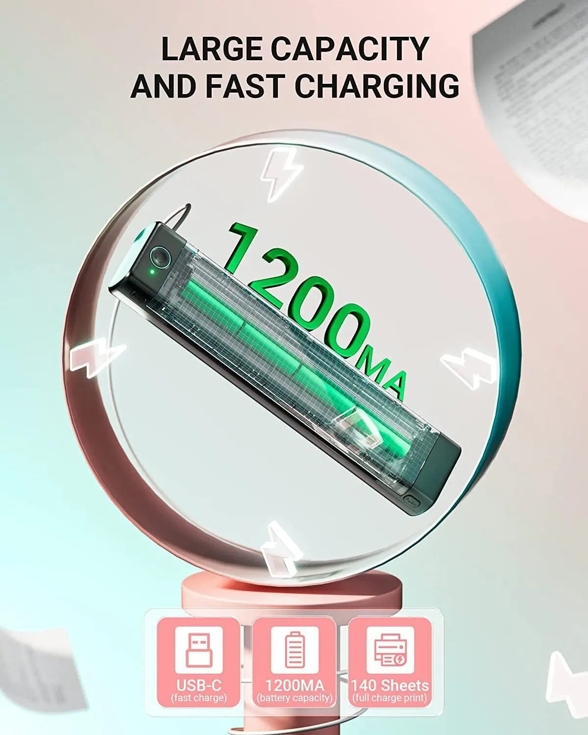 - Built-In Rechargeable Battery: Equipped with a 1200mAh battery for continuous, reliable printing on the go.