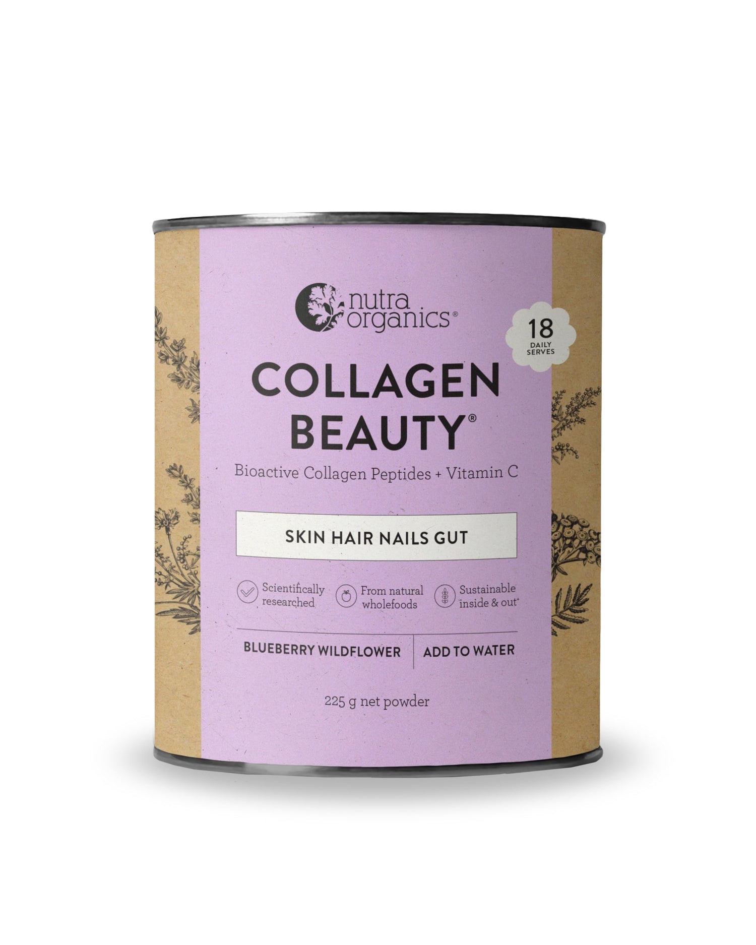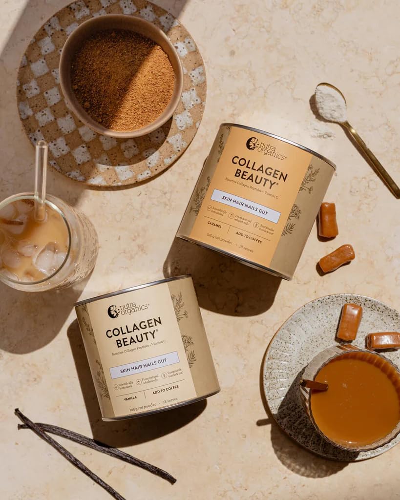 Nutra Organics Collagen Beauty Vanilla 225g | Low Sugar, Non-Dairy, Drink Mix w/Vitamin C | Collagen Powder that Supports Skin Elasticity & Hydration, Healthy Hair, Nails, & Gut Wellbeing (18 Serves)