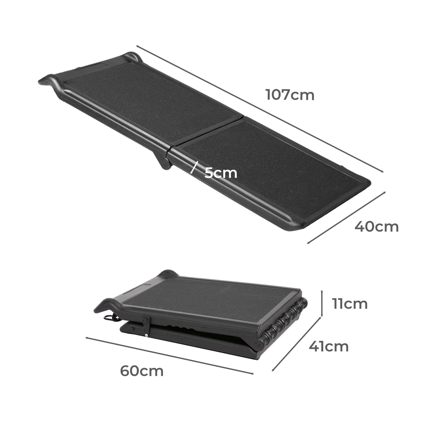 - SPECIFICATIONS: PE (Polyethylene). Opened: 40cm x 107cm x 5cm (W x D x H). Folded: 60cm x 41cm x 11cm (W x D x H). 50kg max capacity. Colour: Black.