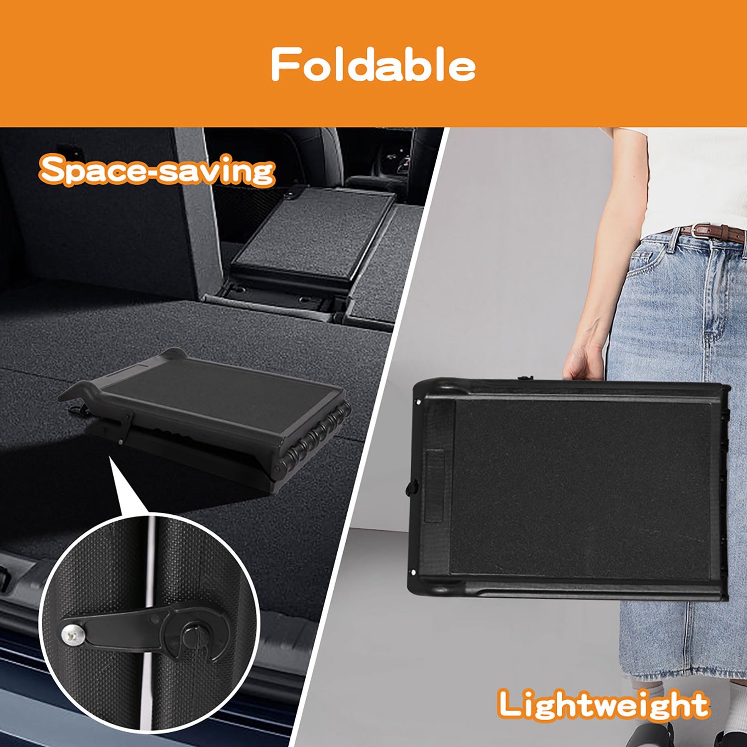 - Space & saving design: The Pet Ramp is very convenient to fold and has a safety latch to keep it closed, making it perfect for travel and easy to store when not in use.