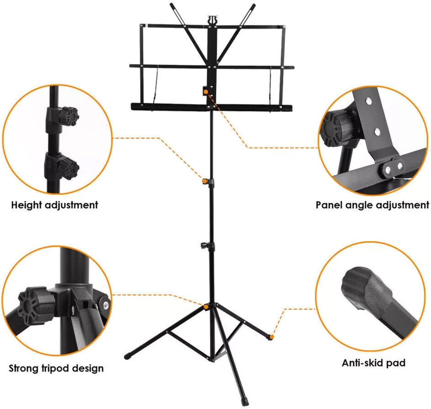 Elevate your music experience with our Folding Adjustable Music Sheet Stand Holder,a perfect blend of durability and convenience. Ideal for musicians of all types, this stand ensures a reliable and smooth surface for your music sheets, making it an essential tool for home practice, school performances or professional use.