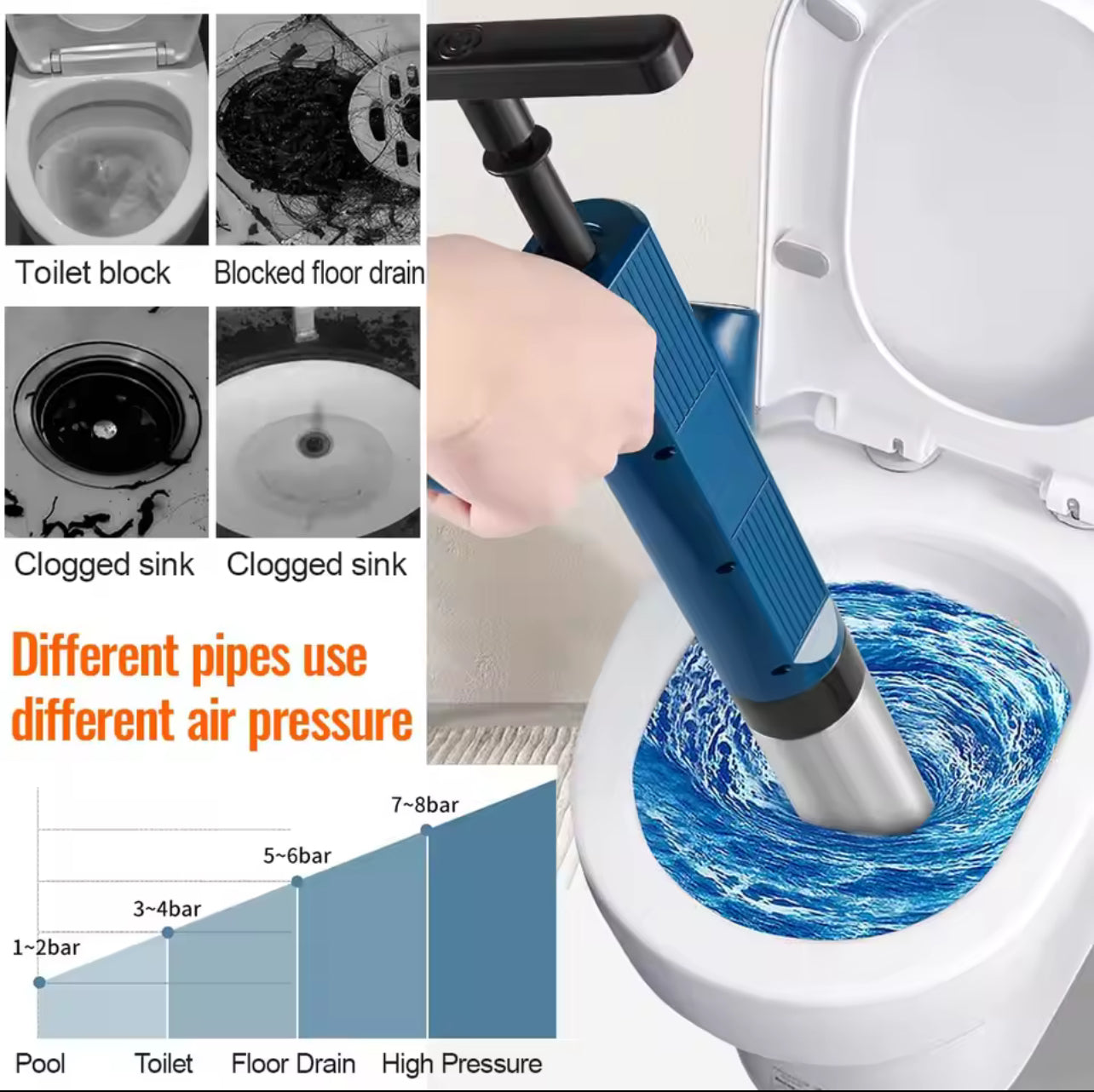 - HIGH-PRESSURE INFLATION: Equipped with a powerful inflation mechanism, it can generate high-pressure air by pulling on the handle repeatedly to effectively break down and flush out even the most stubborn blockages in pipes and drains.