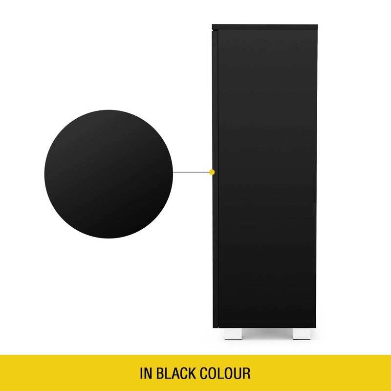 The Black Shoe Storage Cabinet Shoe Rack Shelf is a piece of versatile storage furniture for your hallway or mudroom. Made of sturdy particle board, this shoe cabinet features four tiers with slatted doors and can accommodate up to 30 pairs of shoes. Thanks to its adjustable shelves, the wooden shoe rack can house your footwear of different heights. It also functions as a storage cabinet for your personal accessories. The shoe organiser is easy to assemble with an instruction manual included.Ā
