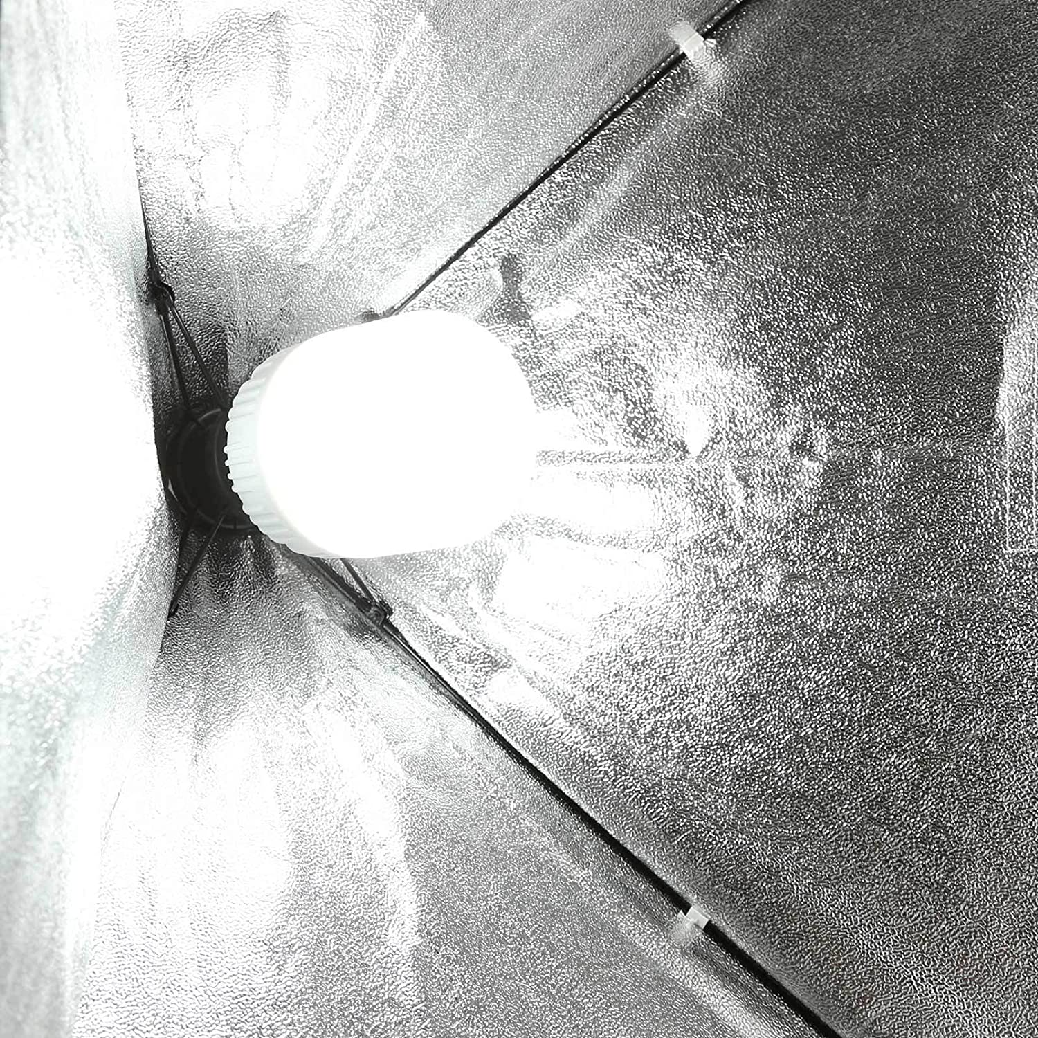 - LARGE SOFTBOX: 50x70cm/20"x28" softbox reflector with removable front diffuser, Ultimate soften light stream and remove shadow to make perfect shooting. Silver internal face can minimize light loss and maximize light spread. White soft cover strengthens the effect of soft light. With E27 socket, you can directly connect light bulbs, fluorescent lamps or slave flash to offer the light. AU Plug.