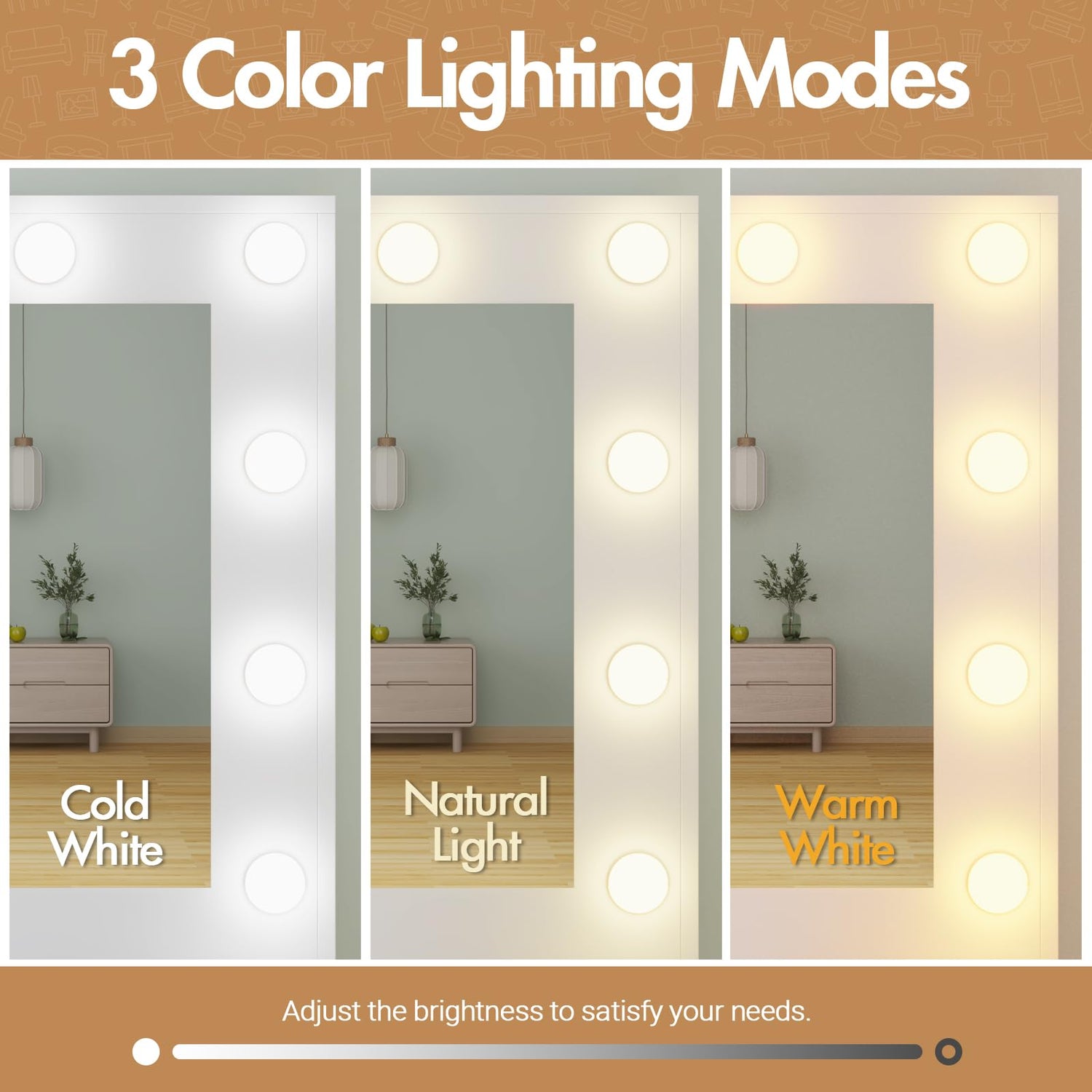 - Adjustable LED Lights: The 12 LED bulbs surrounding the makeup mirror can be adjusted in light colour and brightness through the remote control. So that you can get the perfect makeup effect at any time and in any situation.