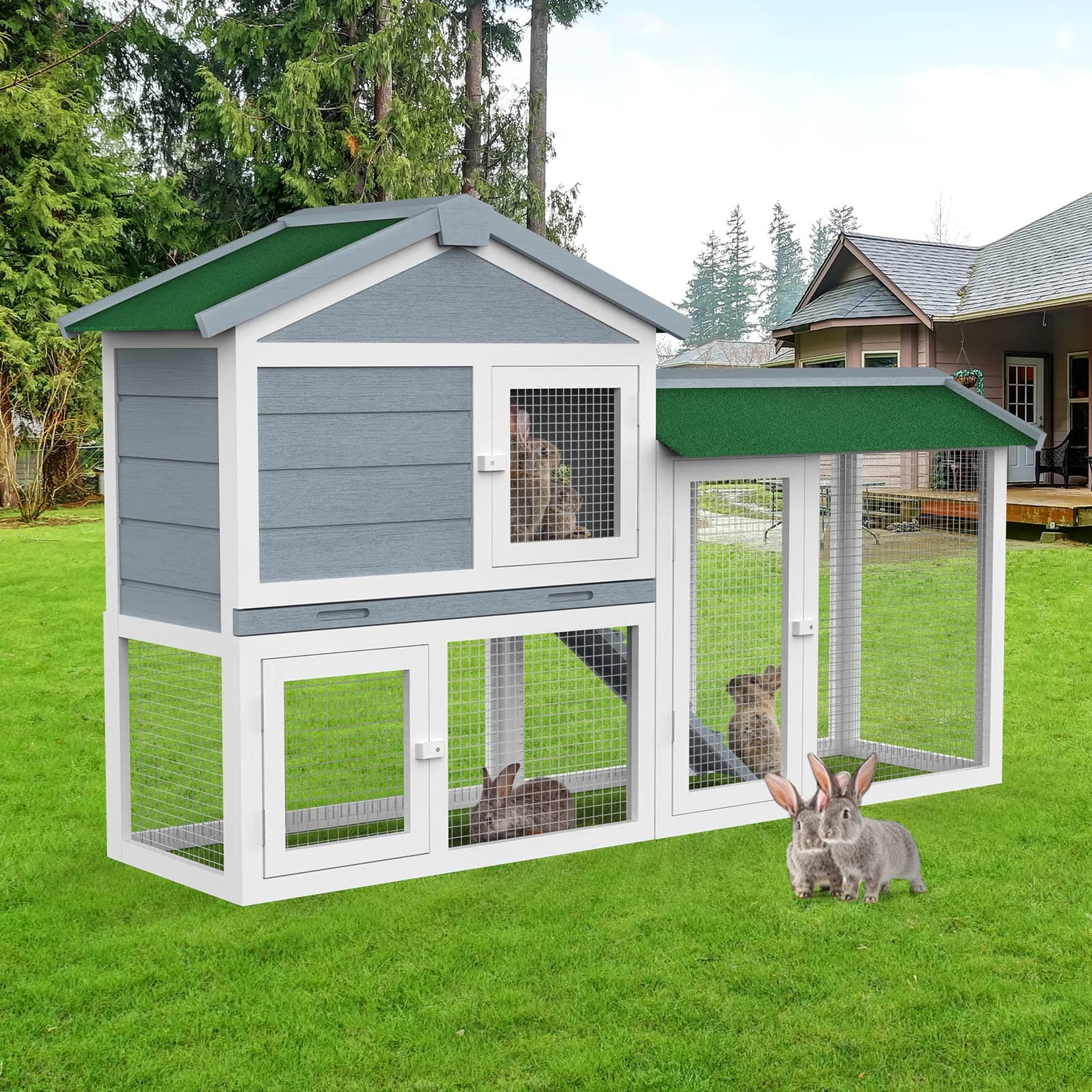 - LARGE LIVING SPACE: The 2-tier rabbit hutch gives your bunnies lots of room to rest and play. With the upper area, pets can stay warm & dry even on raining days.