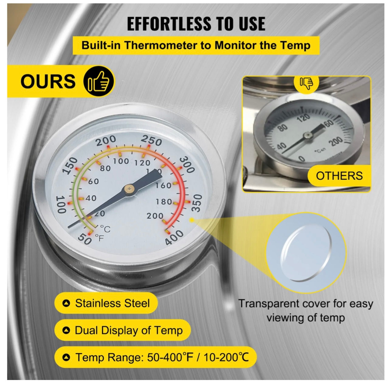 - Convenient Usage: The built-in Celsius and Fahrenheit thermometers can make the distillation more controllable and accurate. The operator can quickly check the temperature while running the still, to ensure a better distillation effect. Cooling water circulation is required when the temperature reaches about 80 degrees.